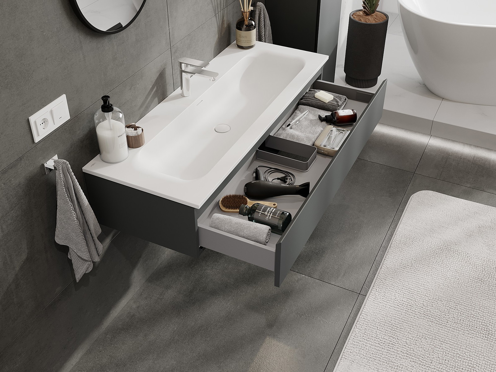 Mexen Orio dulap pentru baie 120 cm cu lavoar Vela, 1 sertar, grafit mat/alb mat - 91A10-12023-1-BF66-W23M01