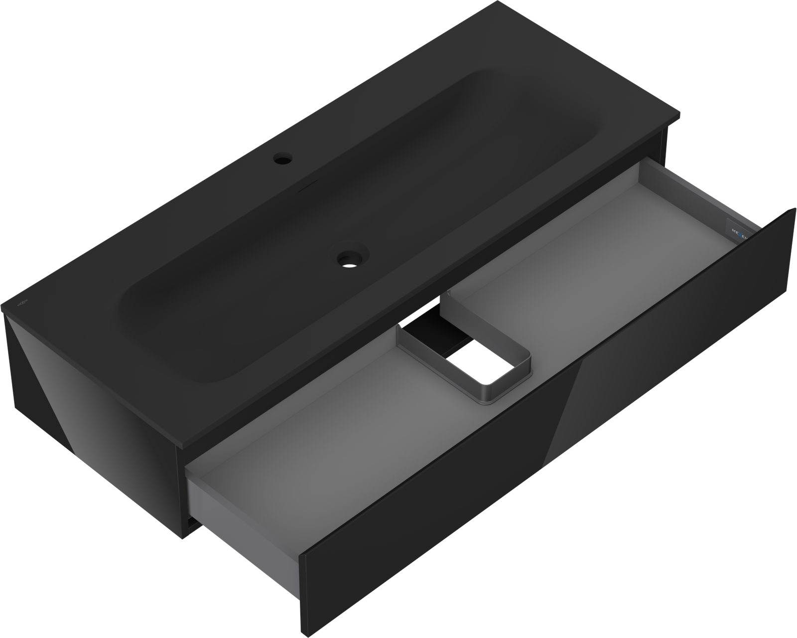Decupajul în sertar este proiectat în așa fel încât să acomodeze sifonul, care este esențial în instalațiile de lavoare. Datorită acestui fapt, mobila poate fi montată complet funcțională, fără a fi necesară renunțarea la spațiul din sertar în favoarea instalației.