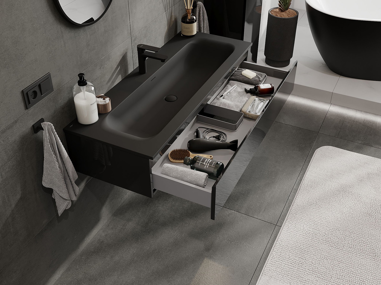 Mobilierul nostru modular pentru baie poate fi combinat în diverse configurații de culori, permițând personalizarea completă. Puteți alege atât aspectul, cât și funcțiile fiecărui element, ceea ce permite adaptarea mobilierului la preferințele dvs. stilistice și funcționale.