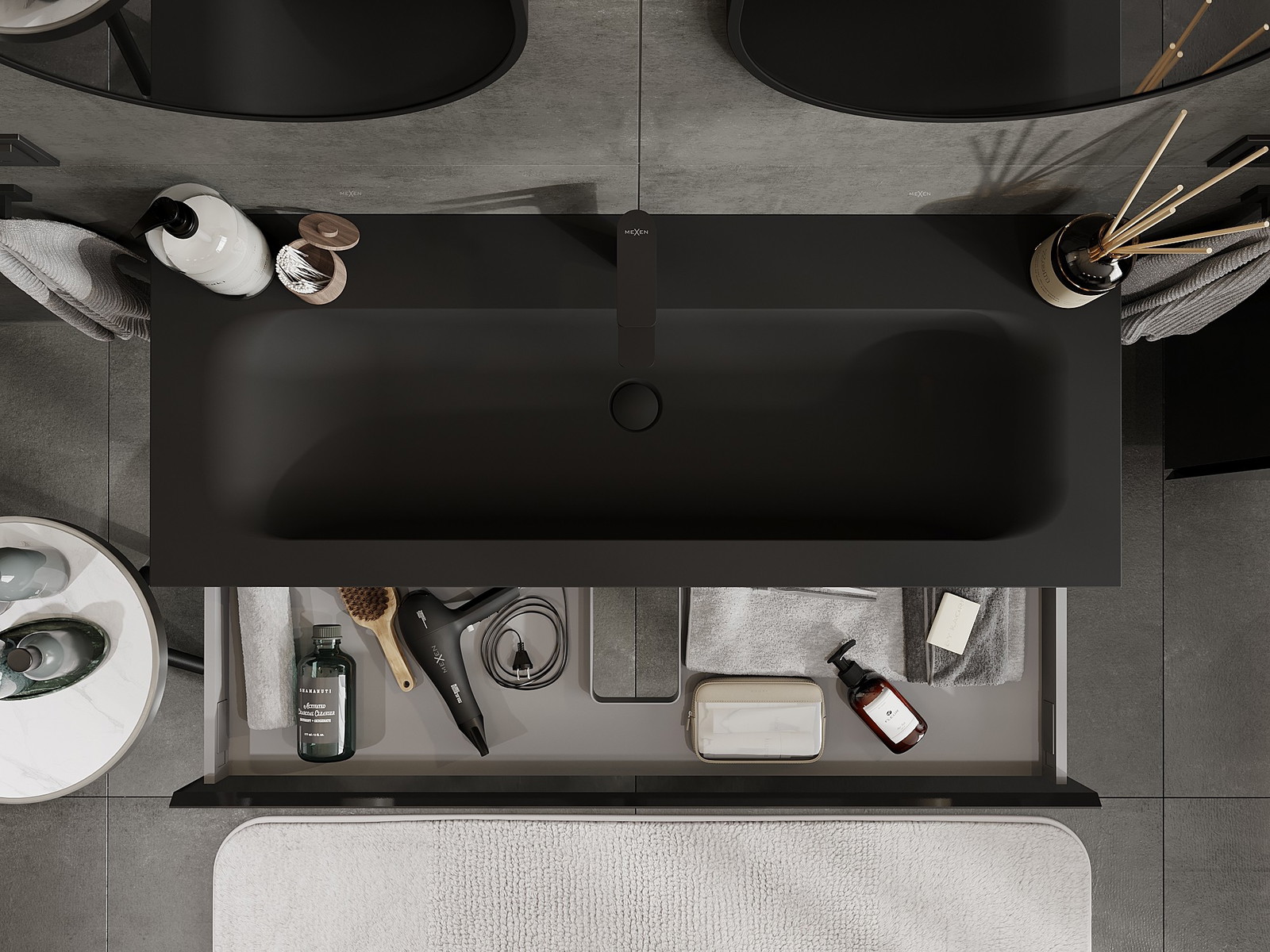 Mexen Orio dulap baie 120 cm cu lavoar Vela, 1 sertar, negru lucios/negru mat - 91A10-12023-1-BF70-W23M71