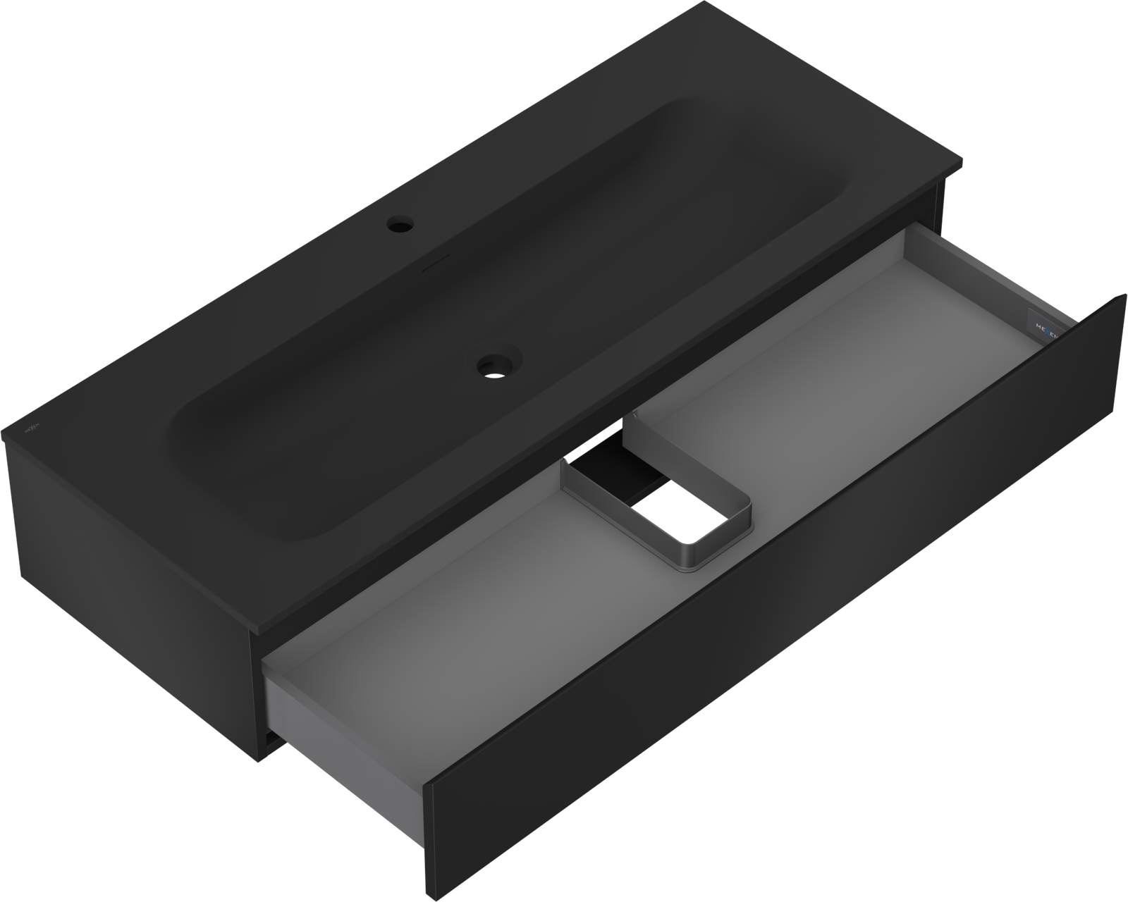 Decupajul în sertar este proiectat în așa fel încât să acomodeze sifonul, care este esențial în instalațiile de lavoare. Datorită acestui fapt, mobila poate fi montată complet funcțională, fără a fi necesară renunțarea la spațiul din sertar în favoarea instalației.
