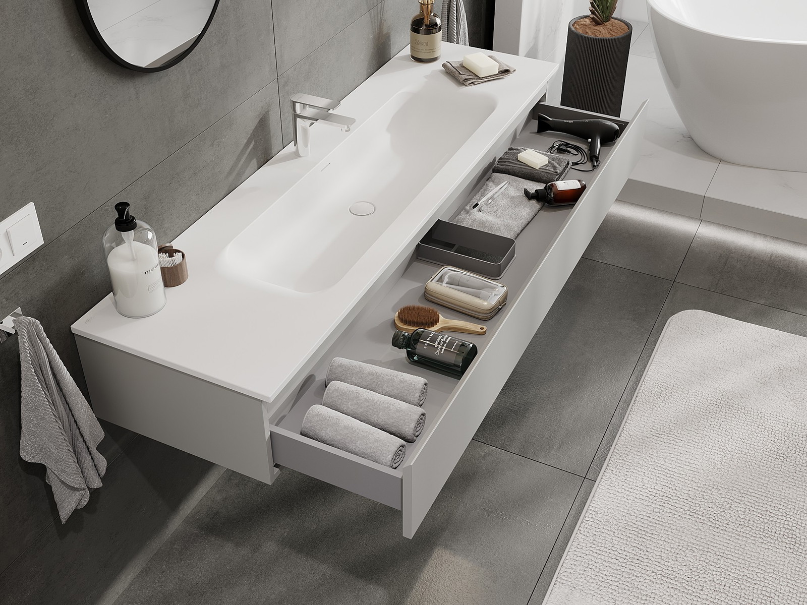 Mobilierul nostru modular pentru baie poate fi combinat în diverse configurații de culori, permițând personalizarea completă. Puteți alege atât aspectul, cât și funcțiile fiecărui element, ceea ce permite adaptarea mobilierului la preferințele dvs. stilistice și funcționale.