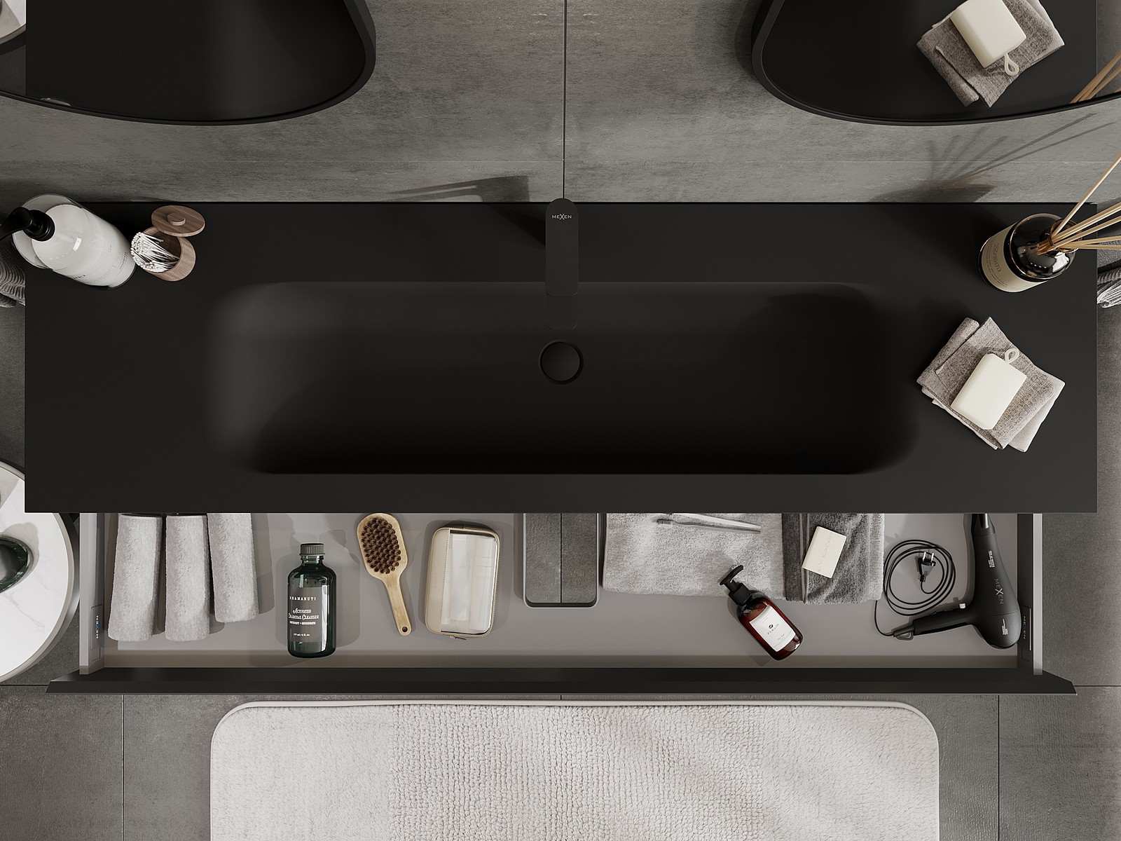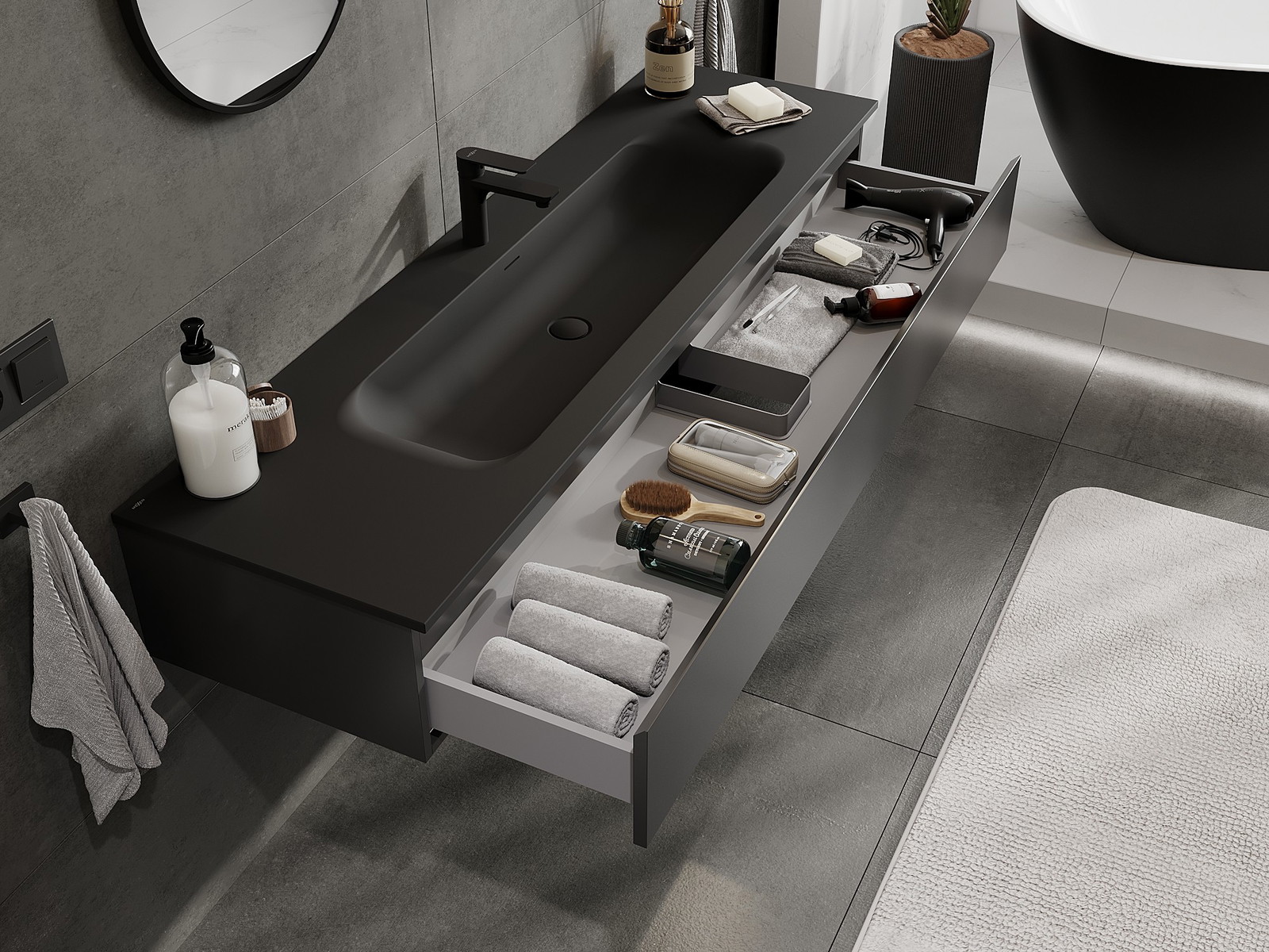 Mexen Orio dulap baie 160 cm cu chiuvetă Vela, 1 sertar, negru mat - 91A10-16023-1-BF71-W23M71