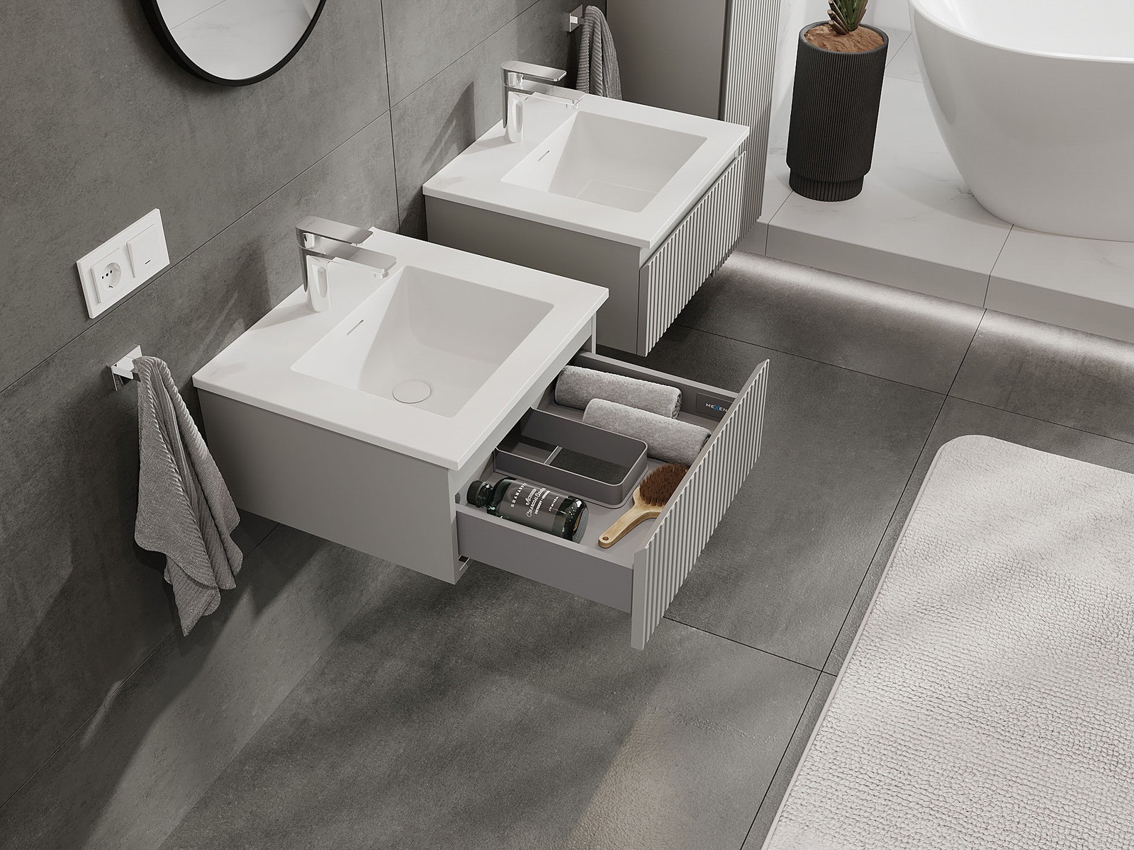 Mexen Rivel dulap baie 50 cm cu chiuvetă Otis, 1 sertar, canelat, gri mat/alb mat - 91A20-05023-1-BF62-W18M01