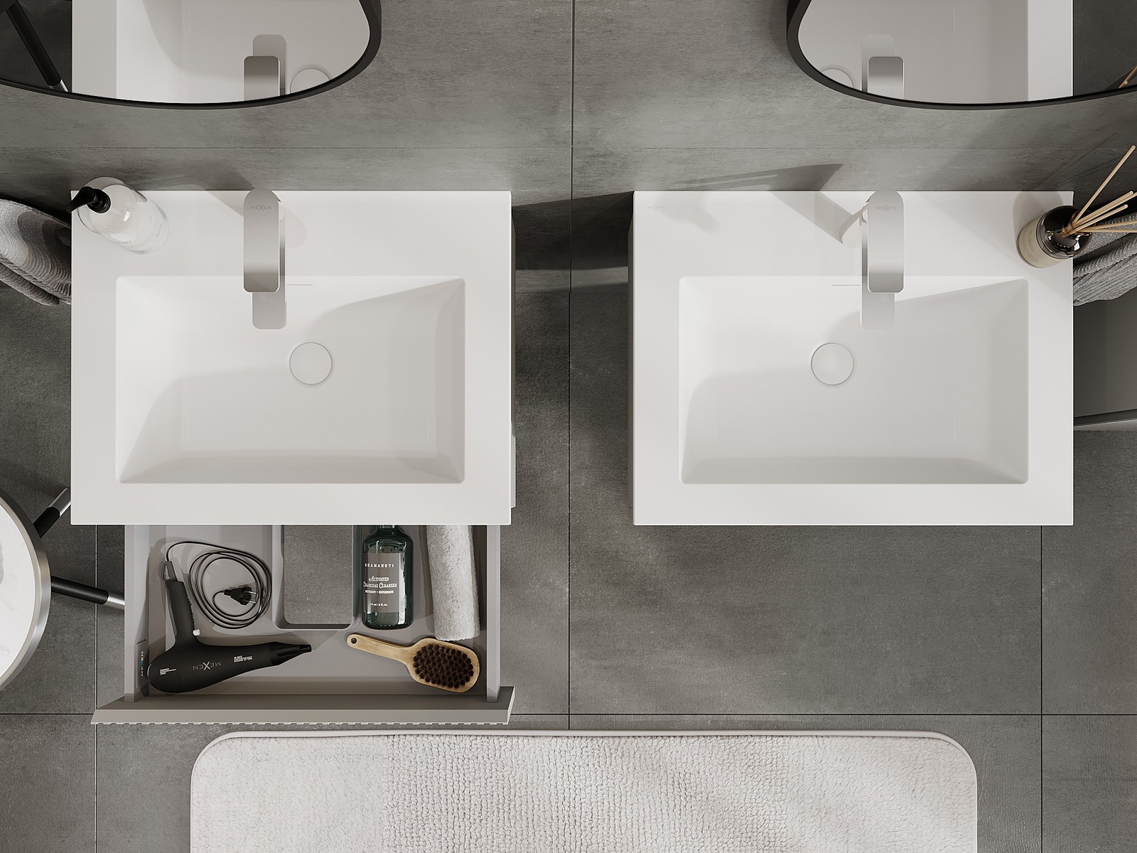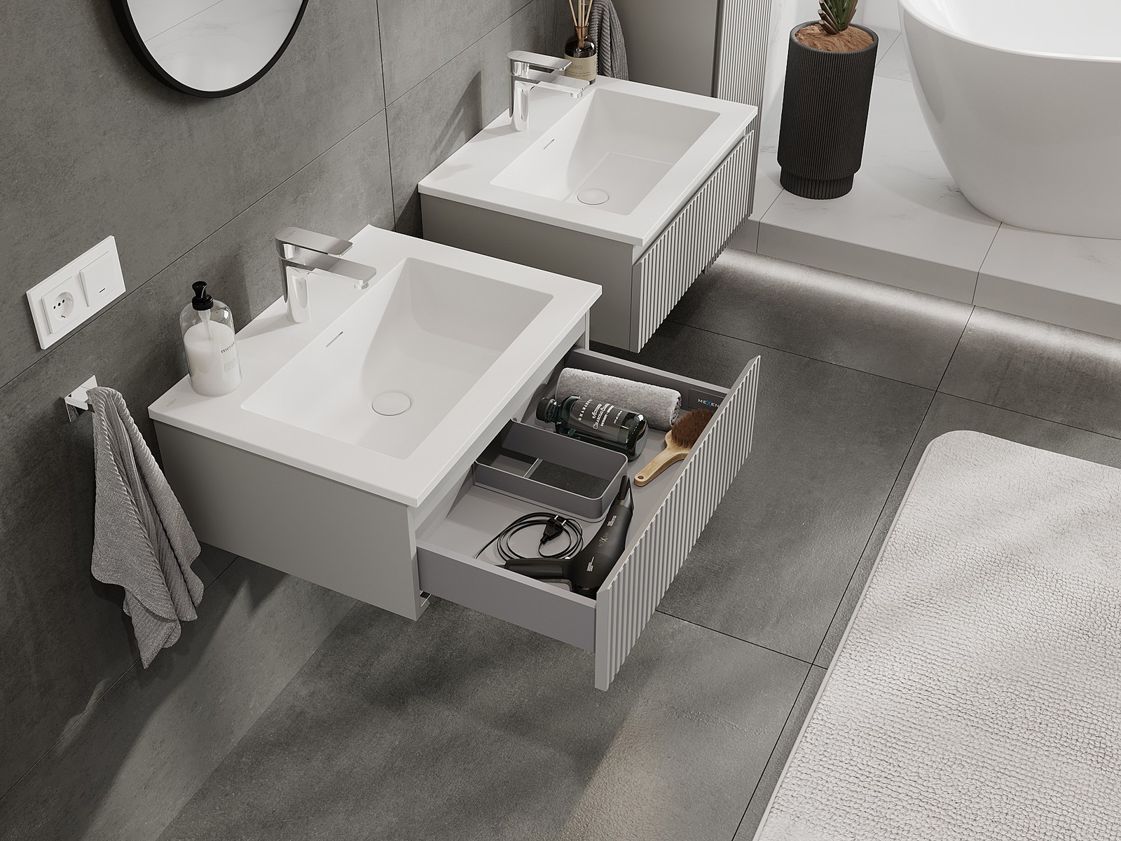 Mobilierul nostru modular pentru baie poate fi combinat în diverse configurații de culori, permițând personalizarea completă. Puteți alege atât aspectul, cât și funcțiile fiecărui element, ceea ce permite adaptarea mobilierului la preferințele dvs. stilistice și funcționale.