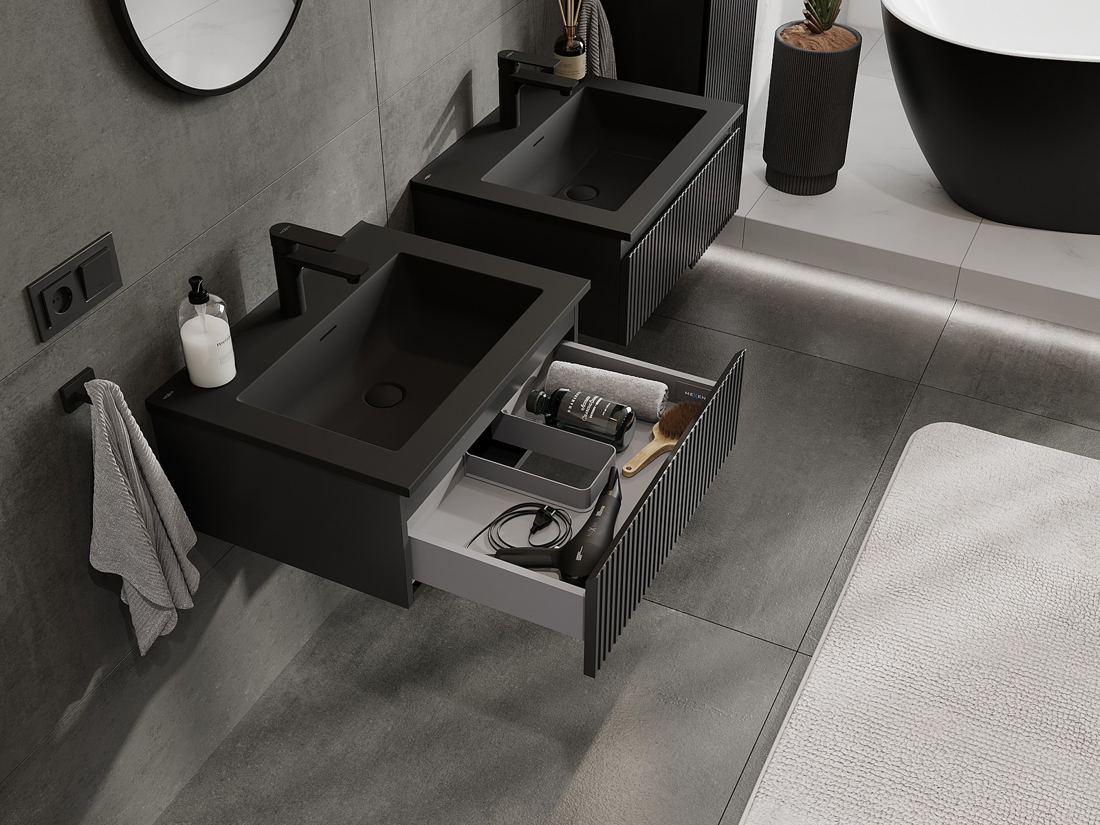 Mexen Rivel dulap baie 60 cm cu lavoar Otis, 1 sertar, texturat, negru mat - 91A20-06023-1-BF71-W18M71