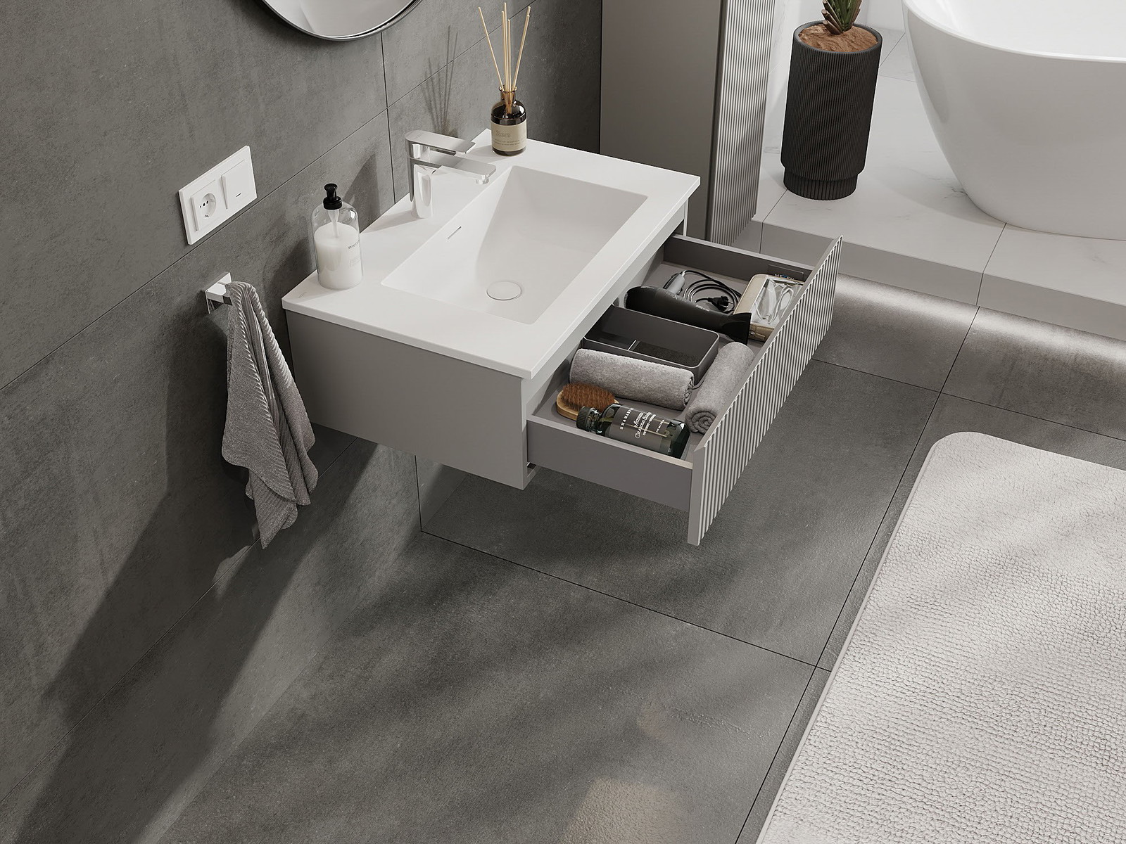 Mexen Rivel dulap baie 70 cm cu chiuvetă Otis, 1 sertar, canelat, gri mat/alb mat - 91A20-07023-1-BF62-W18M01