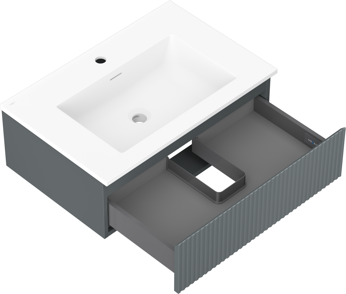 Mexen Rivel dulap de baie 70 cm cu lavoar Otis, 1 sertar, canelat, grafit mat/alb mat - 91A20-07023-1-BF66-W18M01