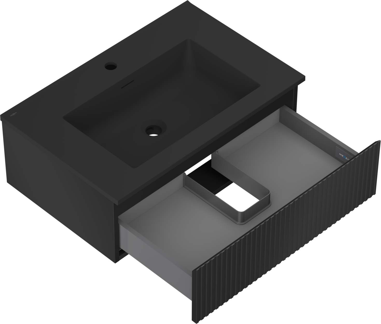 Mexen Rivel dulap de baie 70 cm cu chiuvetă Otis, 1 sertar, texturat, negru mat - 91A20-07023-1-BF71-W18M71