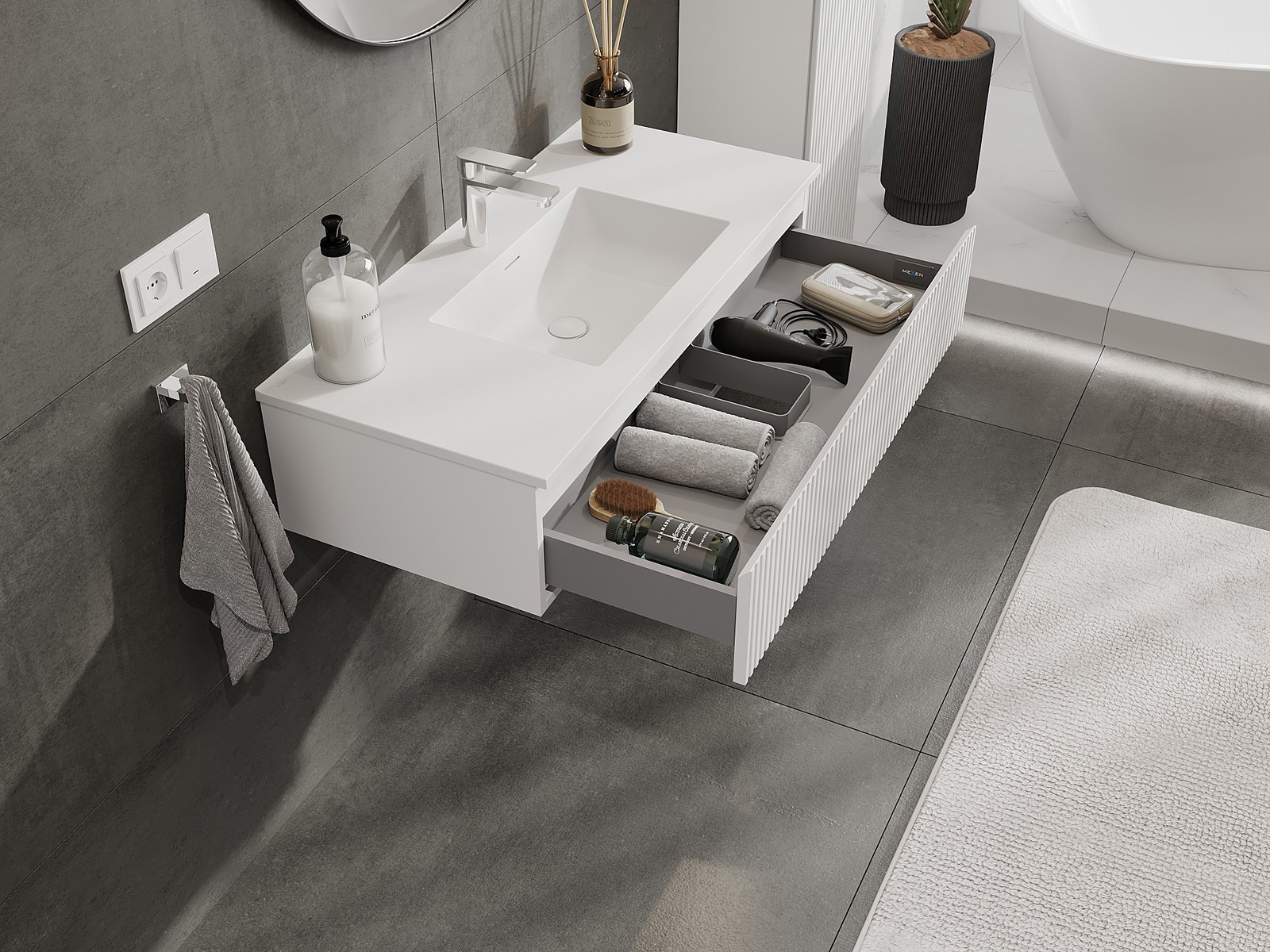Mexen Rivel dulap de baie 100 cm cu lavoar Otis, 1 sertar, canelat, alb mat - 91A20-10023-1-BF01-W18M01