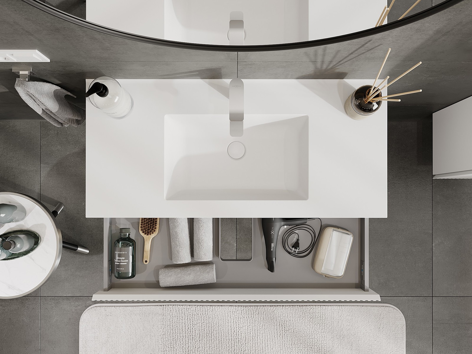 Mobilierul nostru modular pentru baie poate fi combinat în diverse configurații de culori, permițând personalizarea completă. Puteți alege atât aspectul, cât și funcțiile fiecărui element, ceea ce permite adaptarea mobilierului la preferințele dvs. stilistice și funcționale.