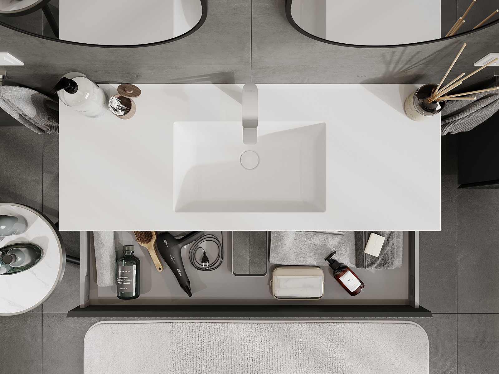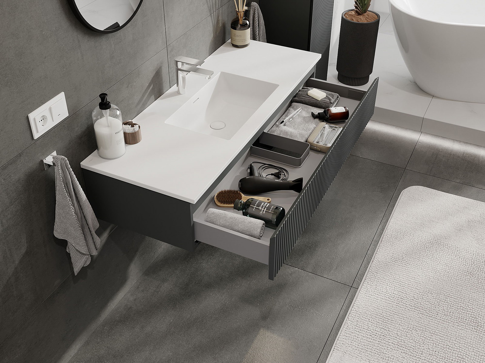 Mobilierul nostru modular pentru baie poate fi combinat în diverse configurații de culori, permițând personalizarea completă. Puteți alege atât aspectul, cât și funcțiile fiecărui element, ceea ce permite adaptarea mobilierului la preferințele dvs. stilistice și funcționale.