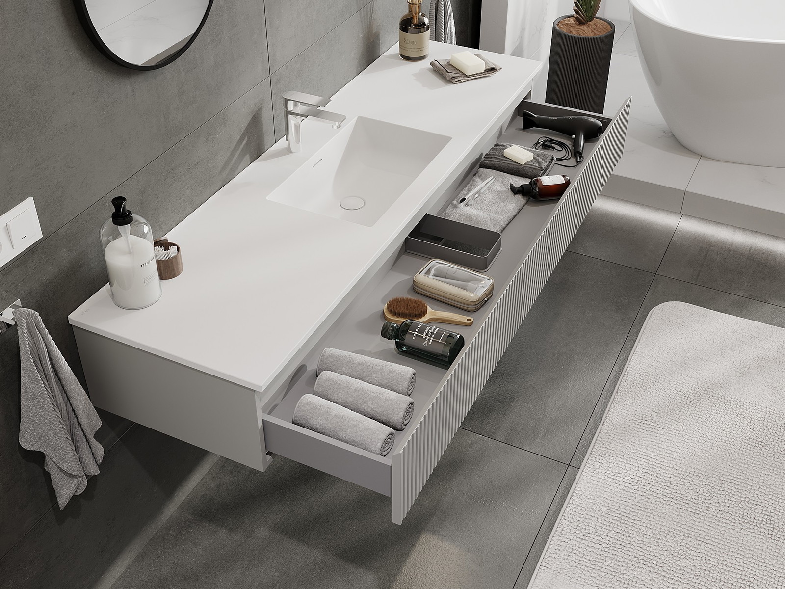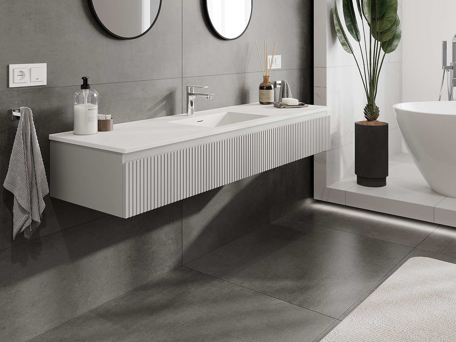 Mexen Rivel dulap baie 160 cm cu lavoar Otis, 1 sertar, canelat, gri mat/alb mat - 91A20-16023-1-BF62-W18M01