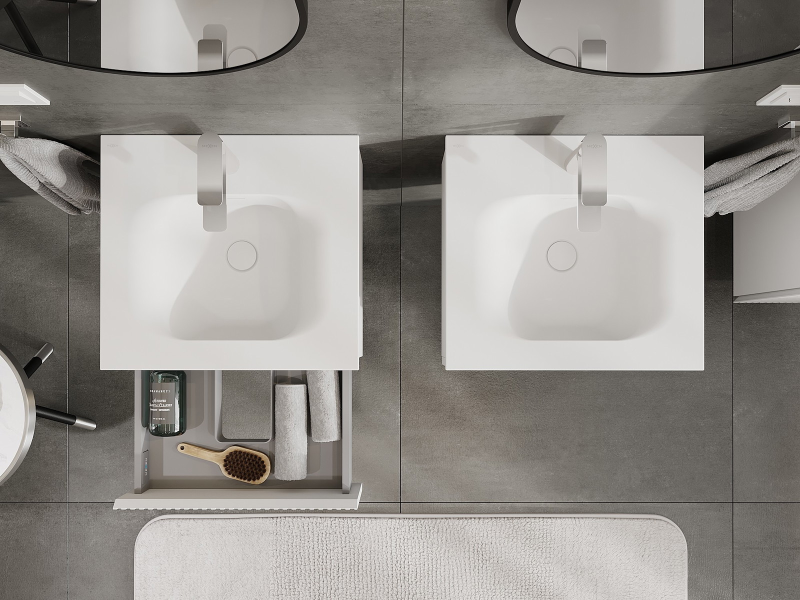 Mobilierul nostru modular pentru baie poate fi combinat în diverse configurații de culori, permițând personalizarea completă. Puteți alege atât aspectul, cât și funcțiile fiecărui element, ceea ce permite adaptarea mobilierului la preferințele dvs. stilistice și funcționale.