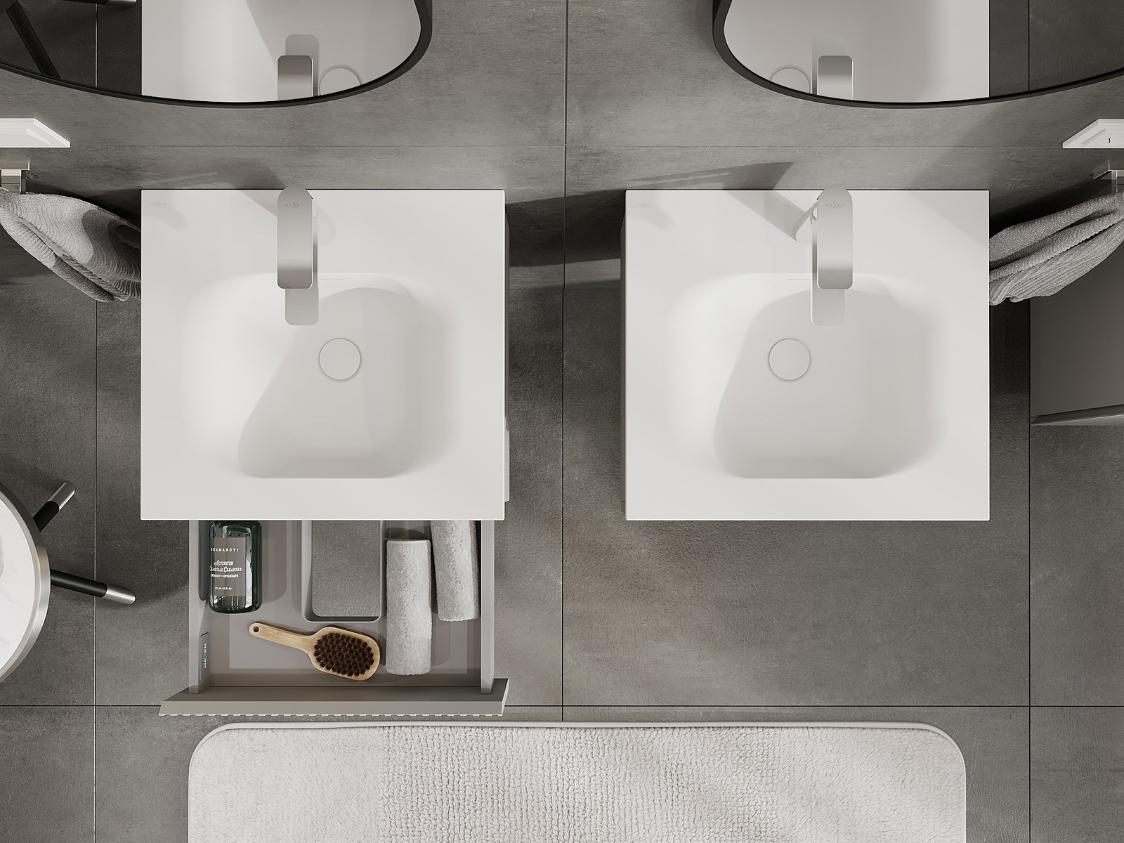 Mobilierul nostru modular pentru baie poate fi combinat în diverse configurații de culori, permițând personalizarea completă. Puteți alege atât aspectul, cât și funcțiile fiecărui element, ceea ce permite adaptarea mobilierului la preferințele dvs. stilistice și funcționale.