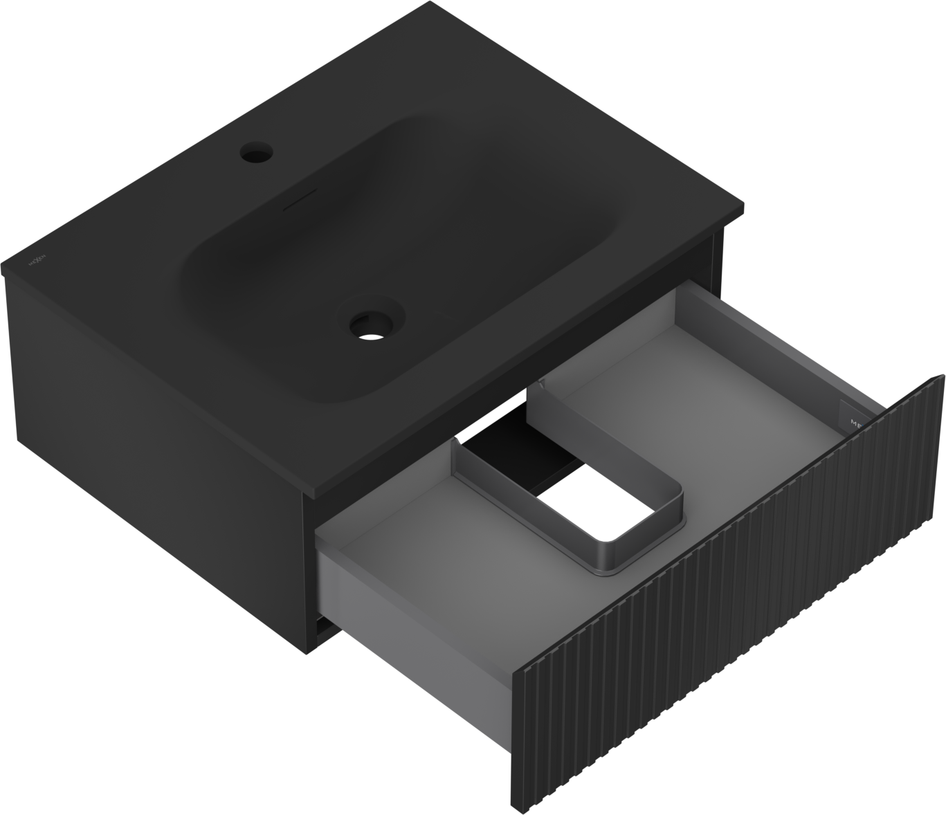 Decupajul în sertar este proiectat în așa fel încât să acomodeze sifonul, care este esențial în instalațiile de lavoare. Datorită acestui fapt, mobila poate fi montată complet funcțională, fără a fi necesară renunțarea la spațiul din sertar în favoarea instalației.