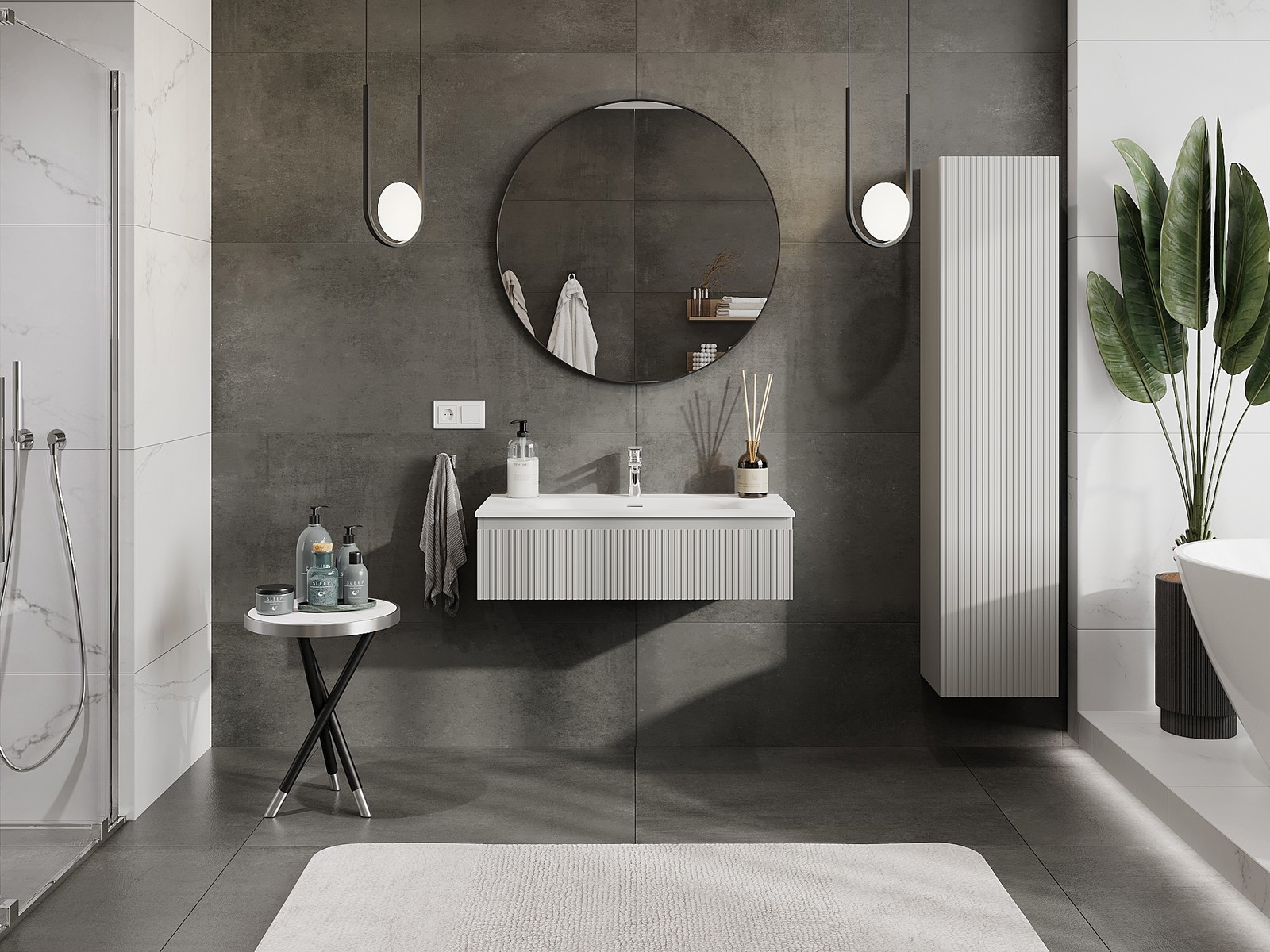Corpul dulapului este livrat complet asamblat, ceea ce înseamnă confort maxim și economie de timp. Nu trebuie să pierzi ore întregi asamblând mobilierul – este suficient să îl montezi în locul ales din baie. Aceasta este soluția ideală pentru persoanele care prețuiesc montajul rapid și efectul imediat.