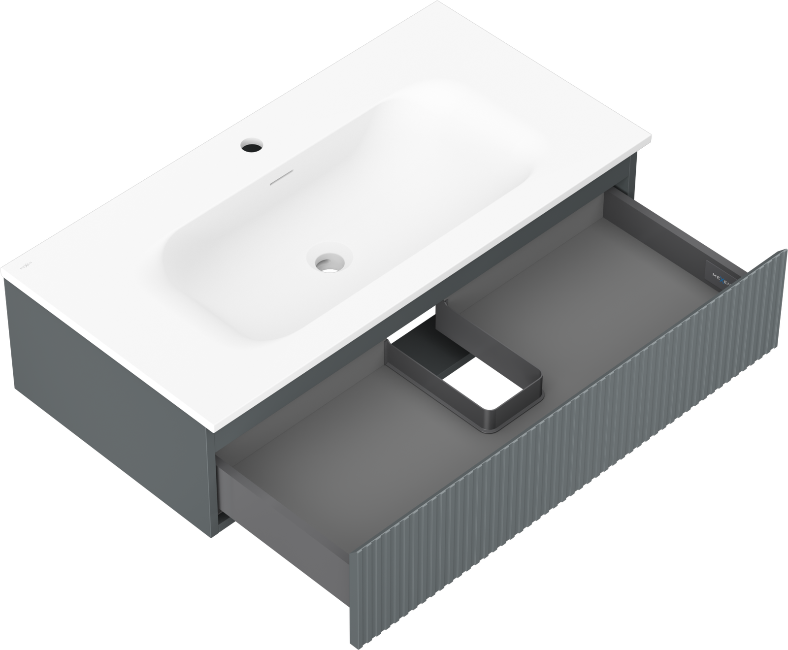 Decupajul în sertar este proiectat în așa fel încât să acomodeze sifonul, care este esențial în instalațiile de lavoare. Datorită acestui fapt, mobila poate fi montată complet funcțională, fără a fi necesară renunțarea la spațiul din sertar în favoarea instalației.