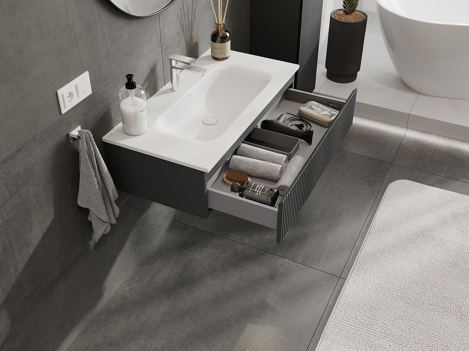 Mobilierul nostru modular pentru baie poate fi combinat în diverse configurații de culori, permițând personalizarea completă. Puteți alege atât aspectul, cât și funcțiile fiecărui element, ceea ce permite adaptarea mobilierului la preferințele dvs. stilistice și funcționale.