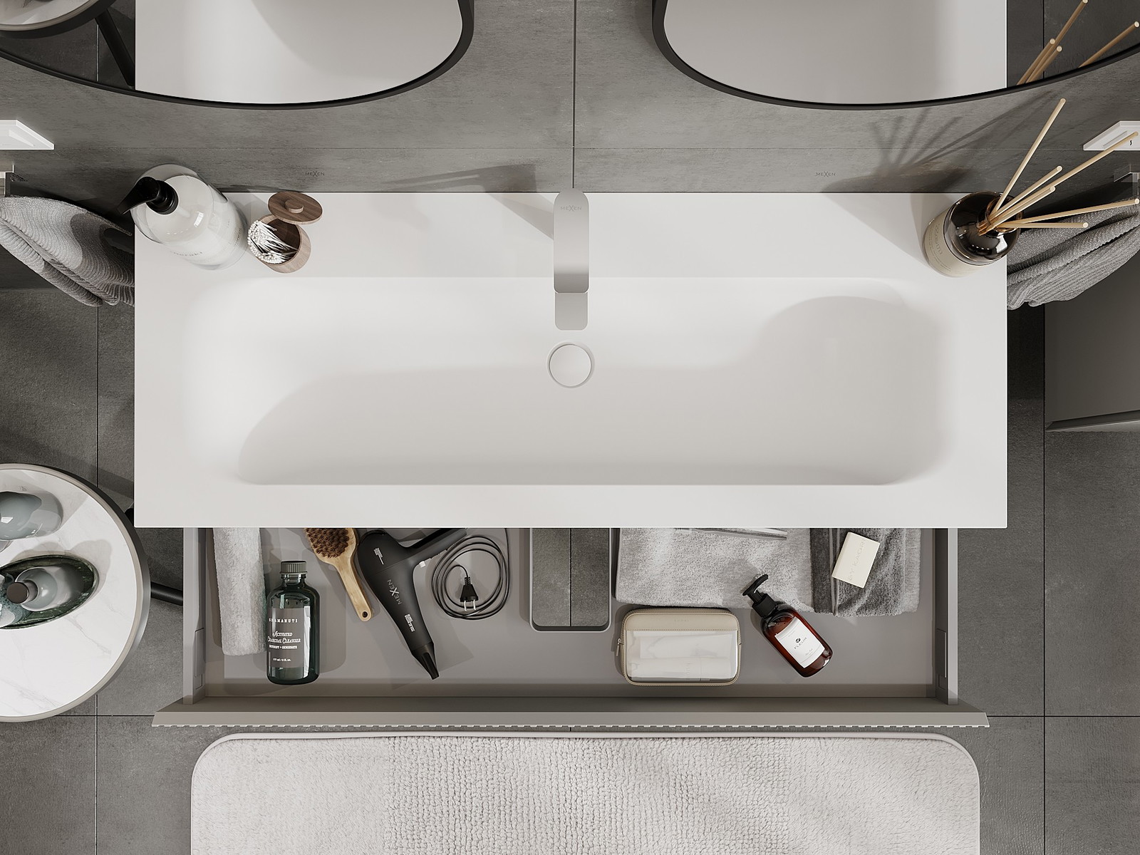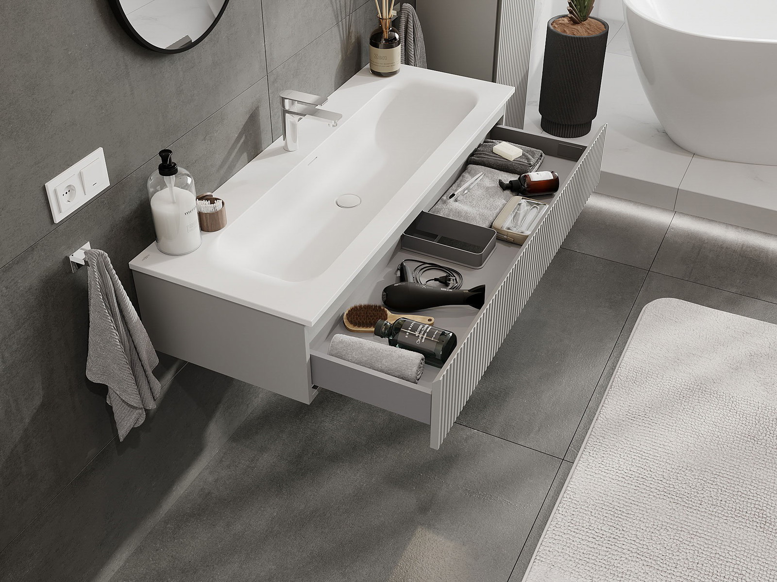 Mobilierul nostru modular pentru baie poate fi combinat în diverse configurații de culori, permițând personalizarea completă. Puteți alege atât aspectul, cât și funcțiile fiecărui element, ceea ce permite adaptarea mobilierului la preferințele dvs. stilistice și funcționale.