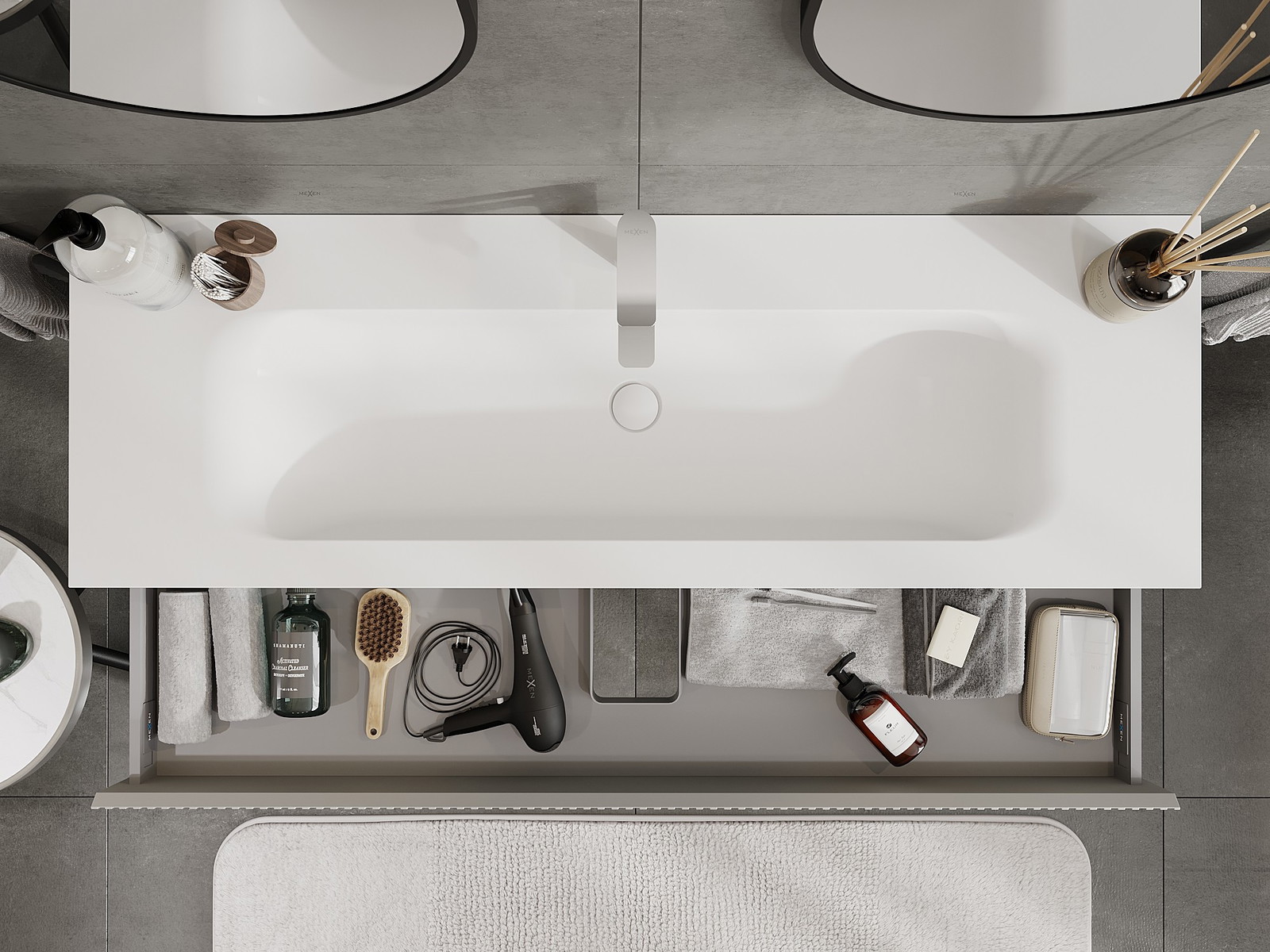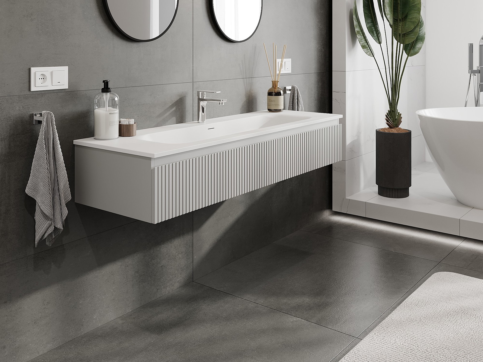 Mobilierul nostru modular pentru baie poate fi combinat în diverse configurații de culori, permițând personalizarea completă. Puteți alege atât aspectul, cât și funcțiile fiecărui element, ceea ce permite adaptarea mobilierului la preferințele dvs. stilistice și funcționale.