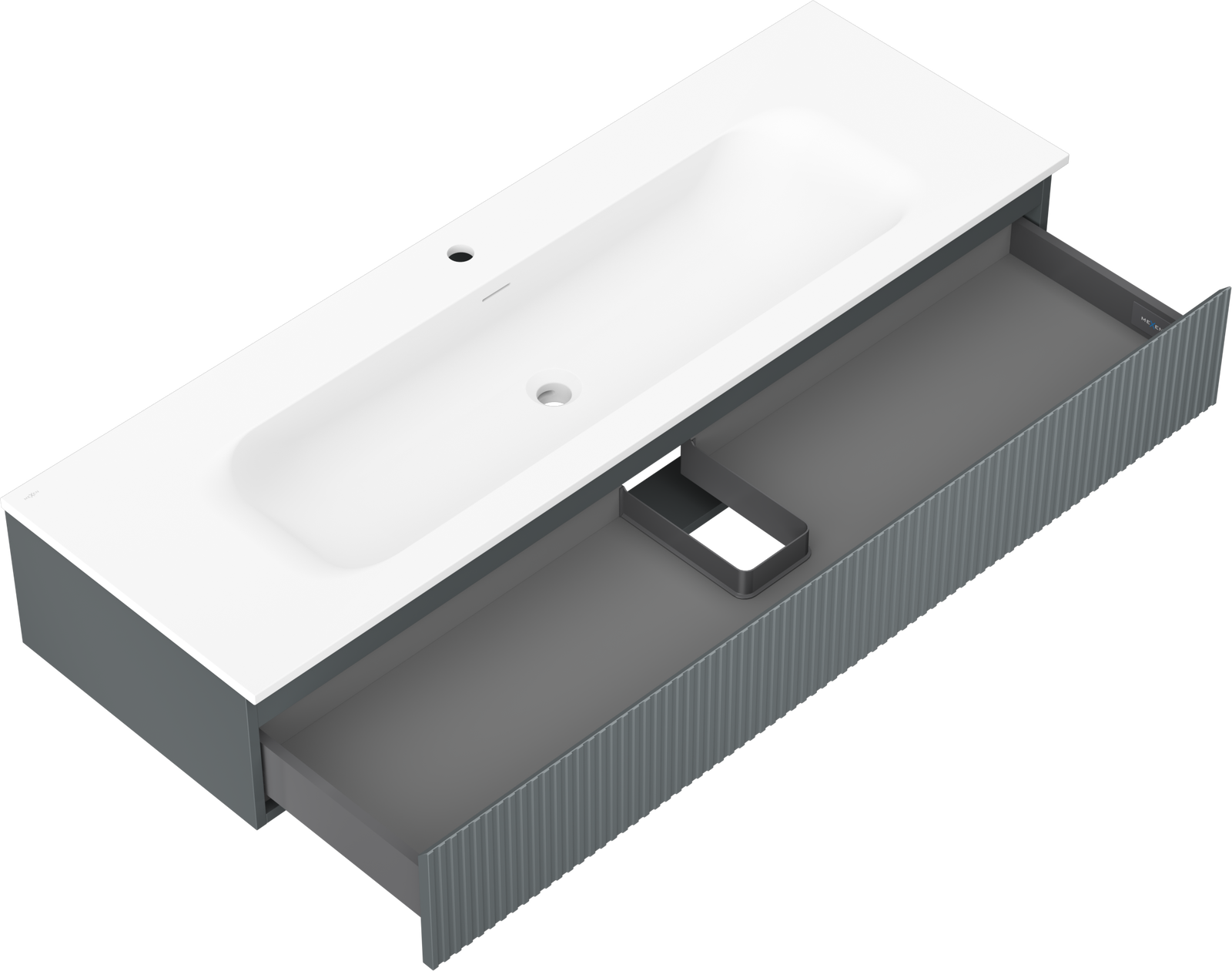 Decupajul în sertar este proiectat în așa fel încât să acomodeze sifonul, care este esențial în instalațiile de lavoare. Datorită acestui fapt, mobila poate fi montată complet funcțională, fără a fi necesară renunțarea la spațiul din sertar în favoarea instalației.