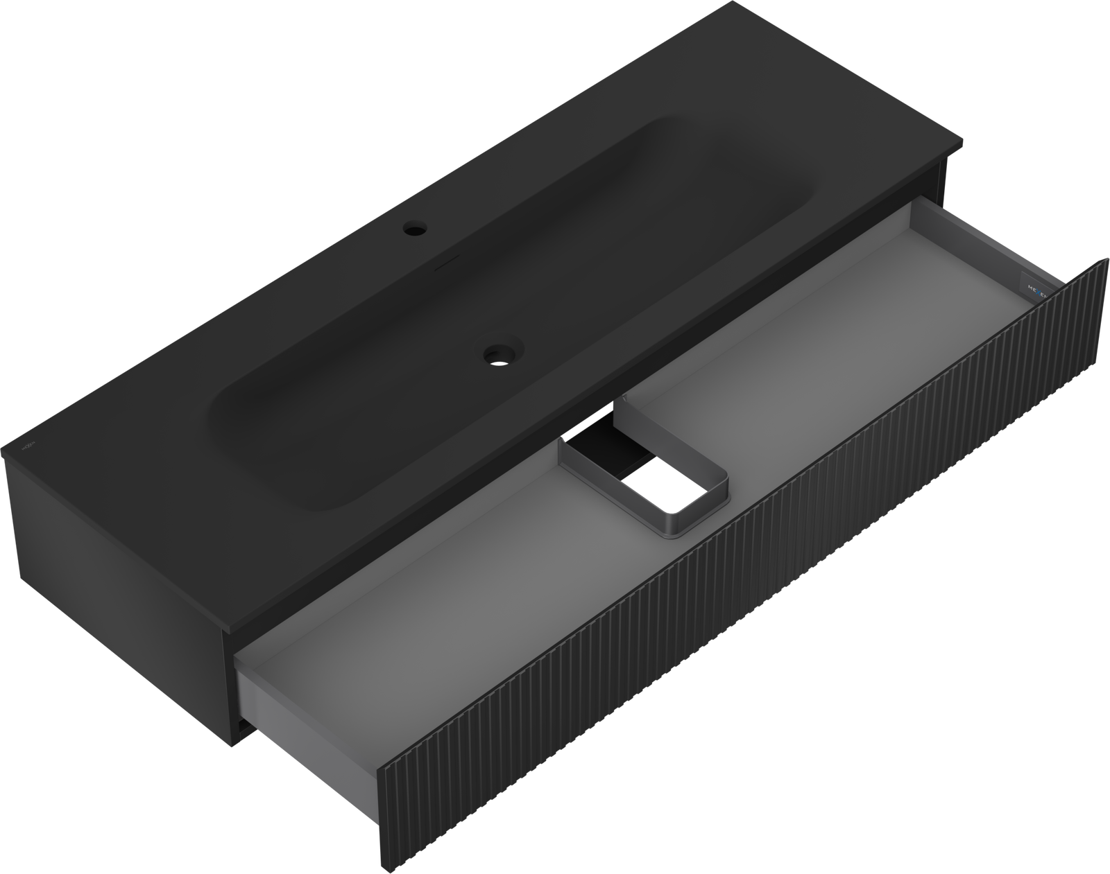Decupajul în sertar este proiectat în așa fel încât să acomodeze sifonul, care este esențial în instalațiile de lavoare. Datorită acestui fapt, mobila poate fi montată complet funcțională, fără a fi necesară renunțarea la spațiul din sertar în favoarea instalației.