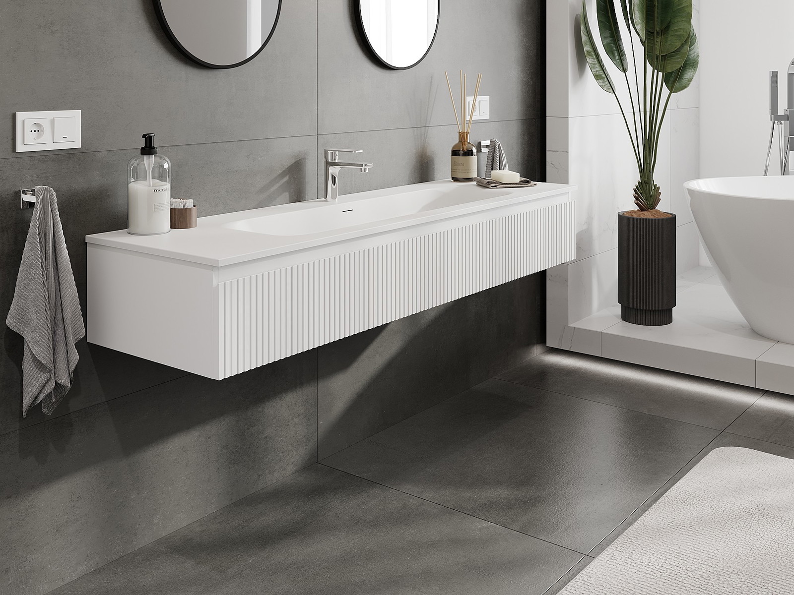 Mobilierul nostru modular pentru baie poate fi combinat în diverse configurații de culori, permițând personalizarea completă. Puteți alege atât aspectul, cât și funcțiile fiecărui element, ceea ce permite adaptarea mobilierului la preferințele dvs. stilistice și funcționale.