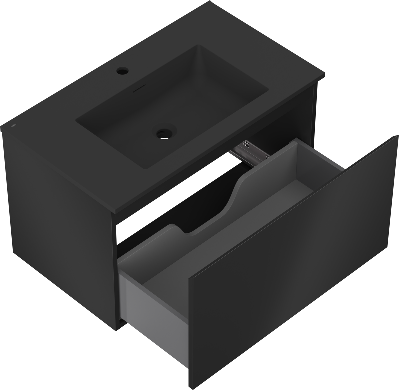 Decupajul în sertar este proiectat în așa fel încât să acomodeze sifonul, care este esențial în instalațiile de lavoare. Datorită acestui fapt, mobila poate fi montată complet funcțională, fără a fi necesară renunțarea la spațiul din sertar în favoarea instalației.
