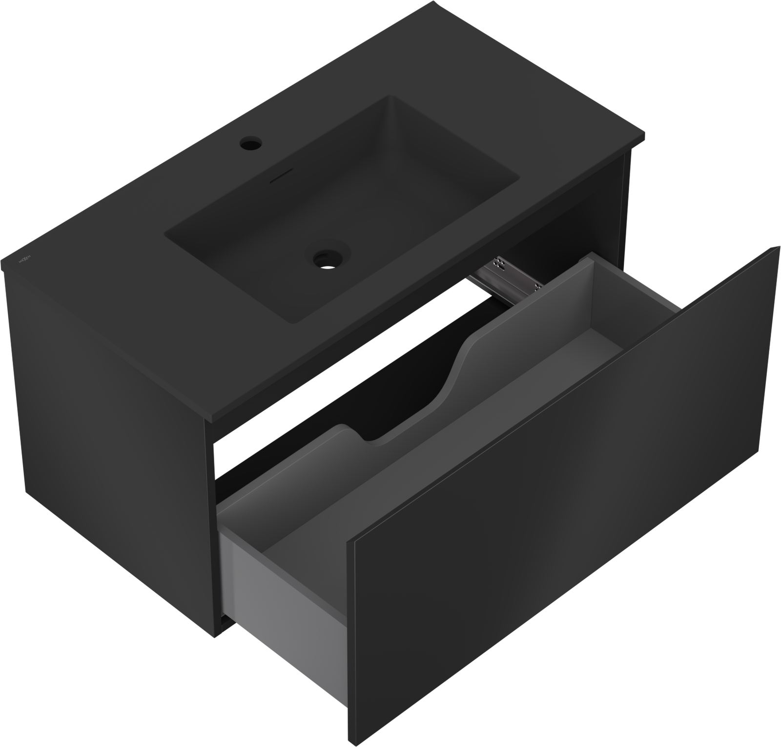 Decupajul în sertar este proiectat în așa fel încât să acomodeze sifonul, care este esențial în instalațiile de lavoare. Datorită acestui fapt, mobila poate fi montată complet funcțională, fără a fi necesară renunțarea la spațiul din sertar în favoarea instalației.