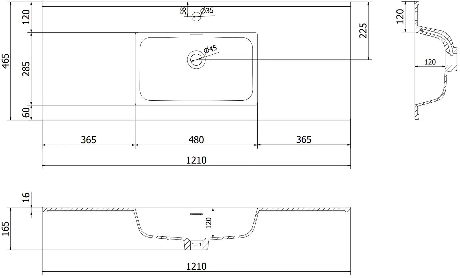 Decupajul în sertar este proiectat în așa fel încât să acomodeze sifonul, care este esențial în instalațiile de lavoare. Datorită acestui fapt, mobila poate fi montată complet funcțională, fără a fi necesară renunțarea la spațiul din sertar în favoarea instalației.