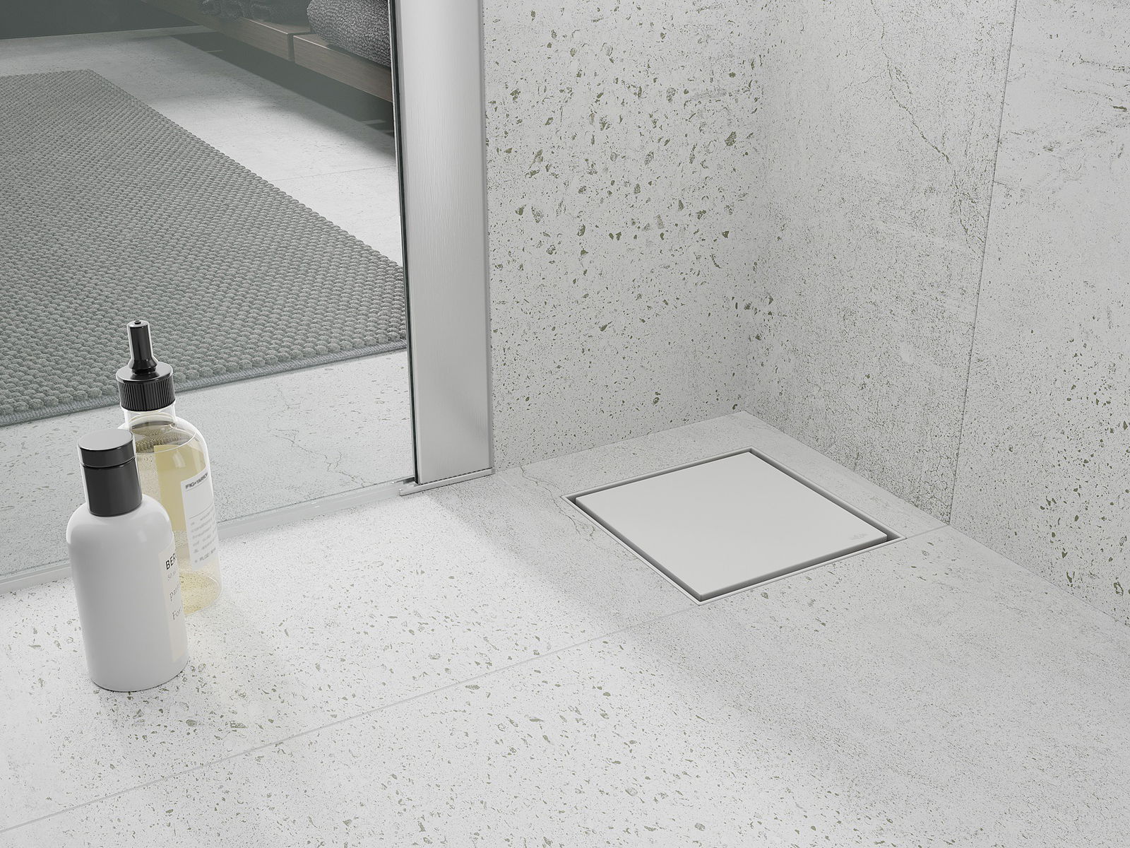 Distanțierele amortizoare garantează o poziționare uniformă a mascherelor, asigurându-le un aspect estetic. Previn eficient frecarea grătarului de carcasă și reduc zgomotul produs în timpul căderii apei direct în scurgere.