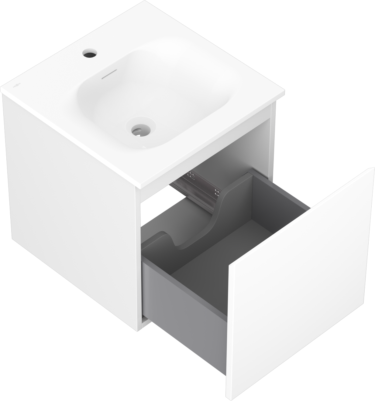 Decupajul în sertar este proiectat în așa fel încât să acomodeze sifonul, care este esențial în instalațiile de lavoare. Datorită acestui fapt, mobila poate fi montată complet funcțională, fără a fi necesară renunțarea la spațiul din sertar în favoarea instalației.