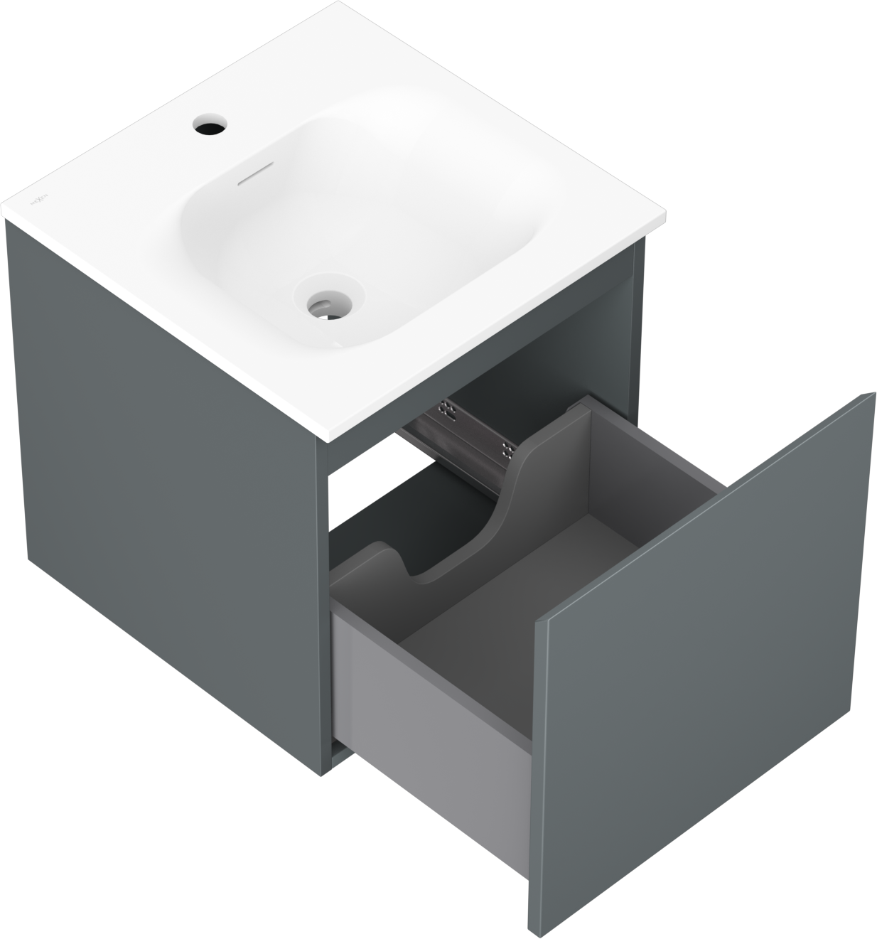 Decupajul în sertar este proiectat în așa fel încât să acomodeze sifonul, care este esențial în instalațiile de lavoare. Datorită acestui fapt, mobila poate fi montată complet funcțională, fără a fi necesară renunțarea la spațiul din sertar în favoarea instalației.