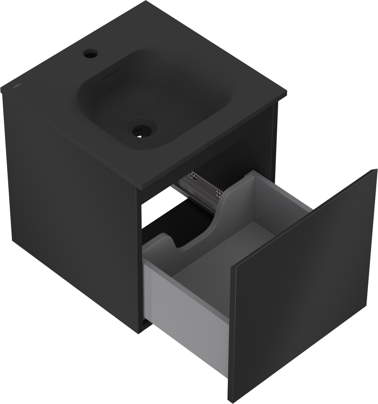 Decupajul în sertar este proiectat în așa fel încât să acomodeze sifonul, care este esențial în instalațiile de lavoare. Datorită acestui fapt, mobila poate fi montată complet funcțională, fără a fi necesară renunțarea la spațiul din sertar în favoarea instalației.