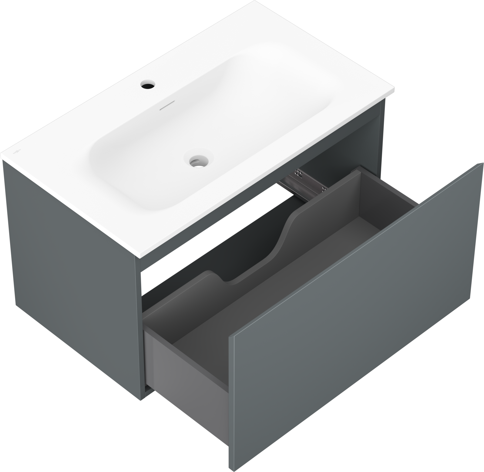Decupajul în sertar este proiectat în așa fel încât să acomodeze sifonul, care este esențial în instalațiile de lavoare. Datorită acestui fapt, mobila poate fi montată complet funcțională, fără a fi necesară renunțarea la spațiul din sertar în favoarea instalației.