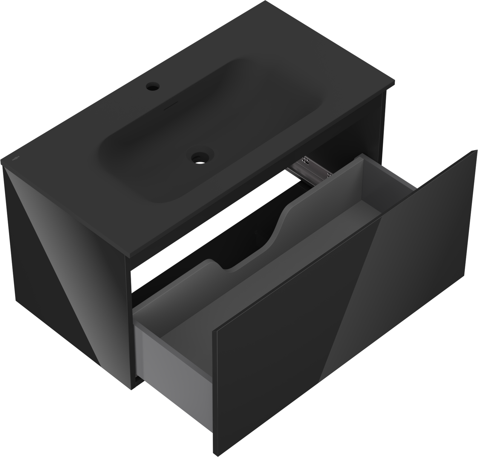 Decupajul în sertar este proiectat în așa fel încât să acomodeze sifonul, care este esențial în instalațiile de lavoare. Datorită acestui fapt, mobila poate fi montată complet funcțională, fără a fi necesară renunțarea la spațiul din sertar în favoarea instalației.