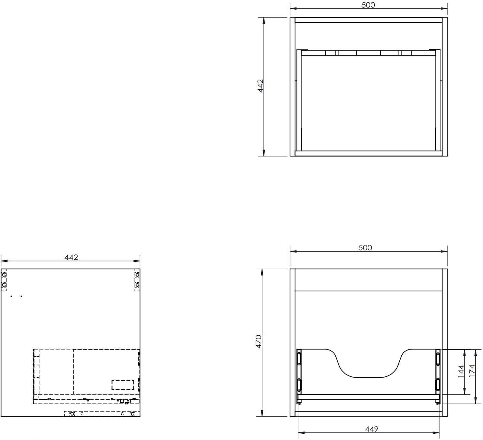 Decupajul în sertar este proiectat în așa fel încât să acomodeze sifonul, care este esențial în instalațiile de lavoare. Datorită acestui fapt, mobila poate fi montată complet funcțională, fără a fi necesară renunțarea la spațiul din sertar în favoarea instalației.