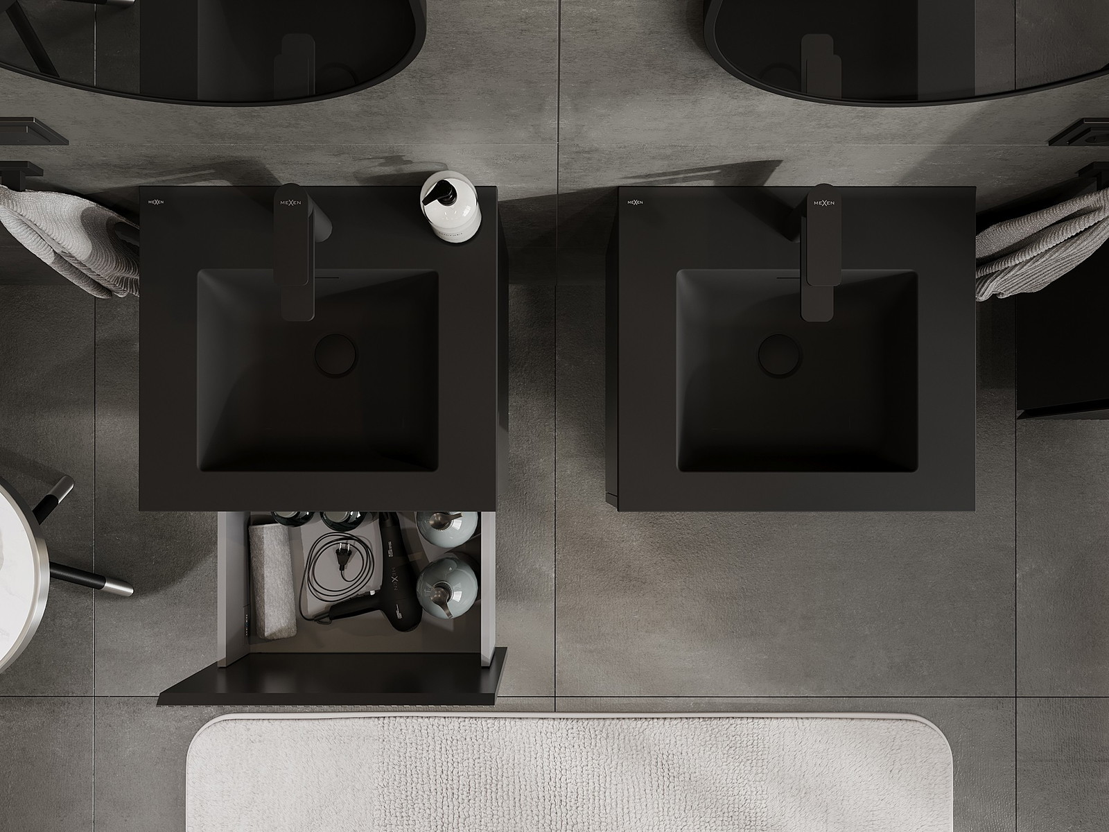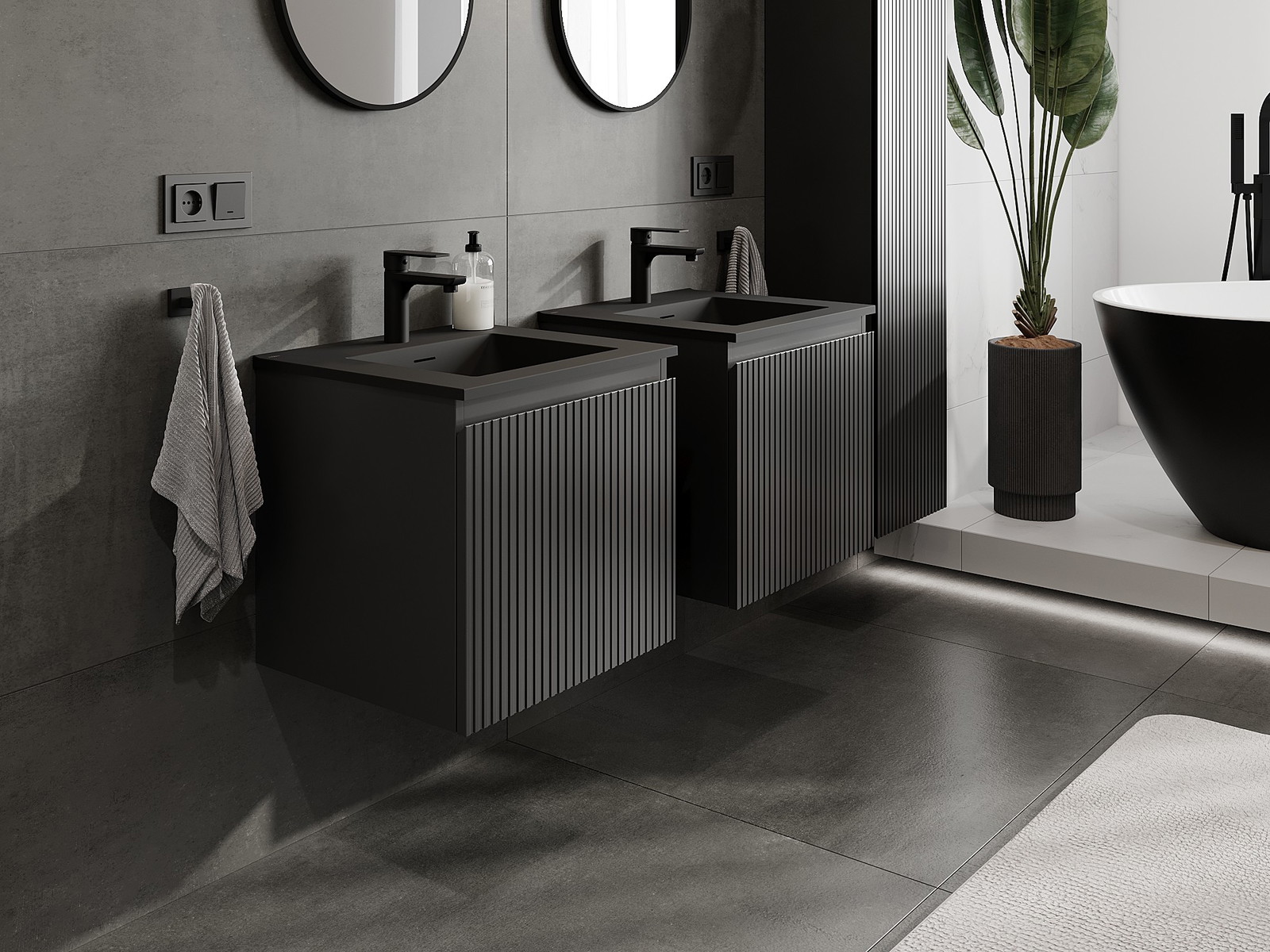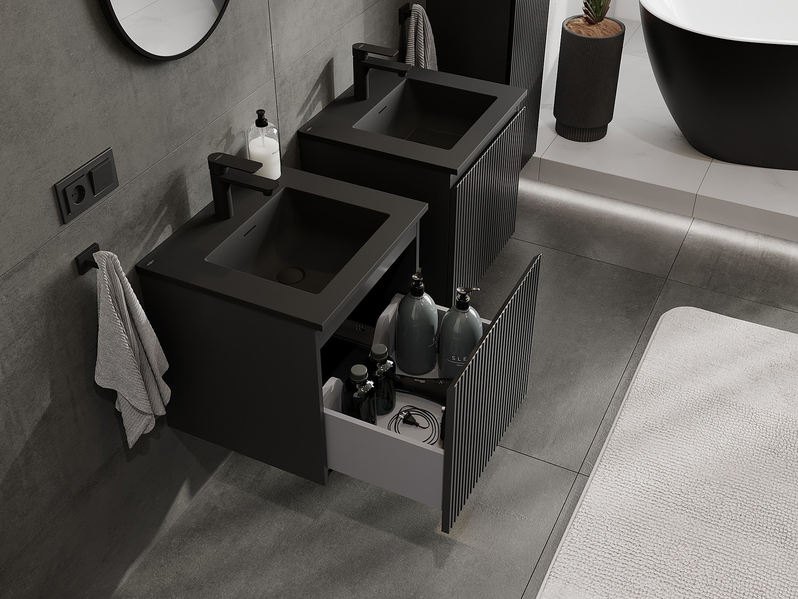 Mexen Rivel dulap baie 50 cm cu chiuvetă Otis, 1 sertar, fațetat, negru mat - 91A20-05047-1-BF71-W18M71