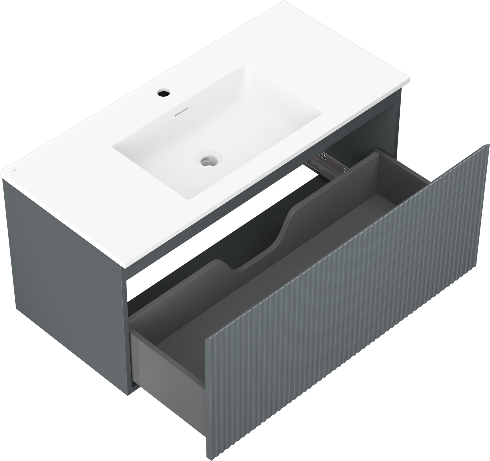 Mexen Rivel dulap baie 100 cm cu lavoar Otis, 1 sertar, cu caneluri, grafit mat/alb mat - 91A20-10047-1-BF66-W18M01