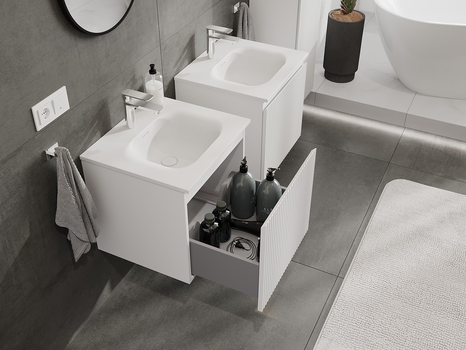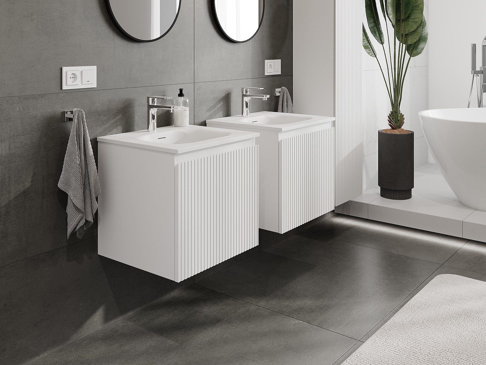 Corpul dulapului este livrat complet asamblat, ceea ce înseamnă confort maxim și economie de timp. Nu trebuie să pierzi ore întregi asamblând mobilierul – este suficient să îl montezi în locul ales din baie. Aceasta este soluția ideală pentru persoanele care prețuiesc montajul rapid și efectul imediat.