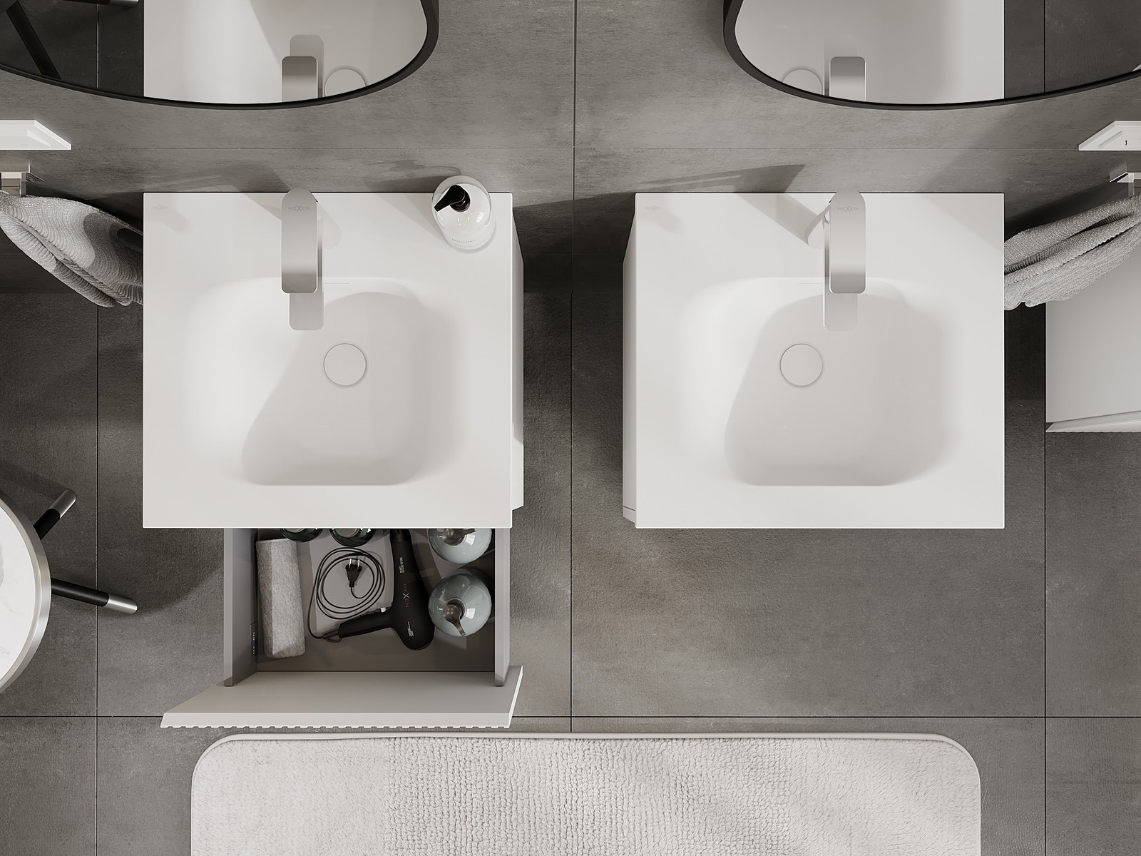 Mobilierul nostru modular pentru baie poate fi combinat în diverse configurații de culori, permițând personalizarea completă. Puteți alege atât aspectul, cât și funcțiile fiecărui element, ceea ce permite adaptarea mobilierului la preferințele dvs. stilistice și funcționale.