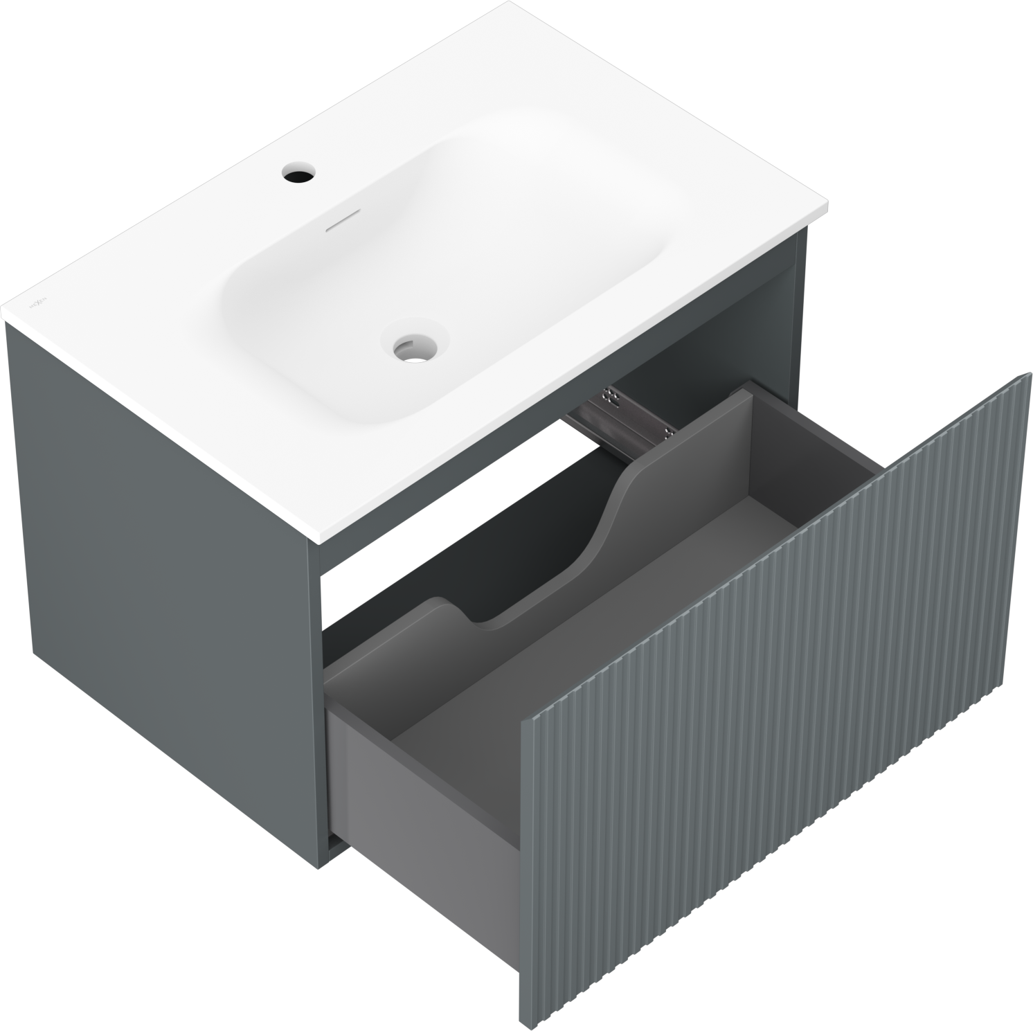 Decupajul în sertar este proiectat în așa fel încât să acomodeze sifonul, care este esențial în instalațiile de lavoare. Datorită acestui fapt, mobila poate fi montată complet funcțională, fără a fi necesară renunțarea la spațiul din sertar în favoarea instalației.