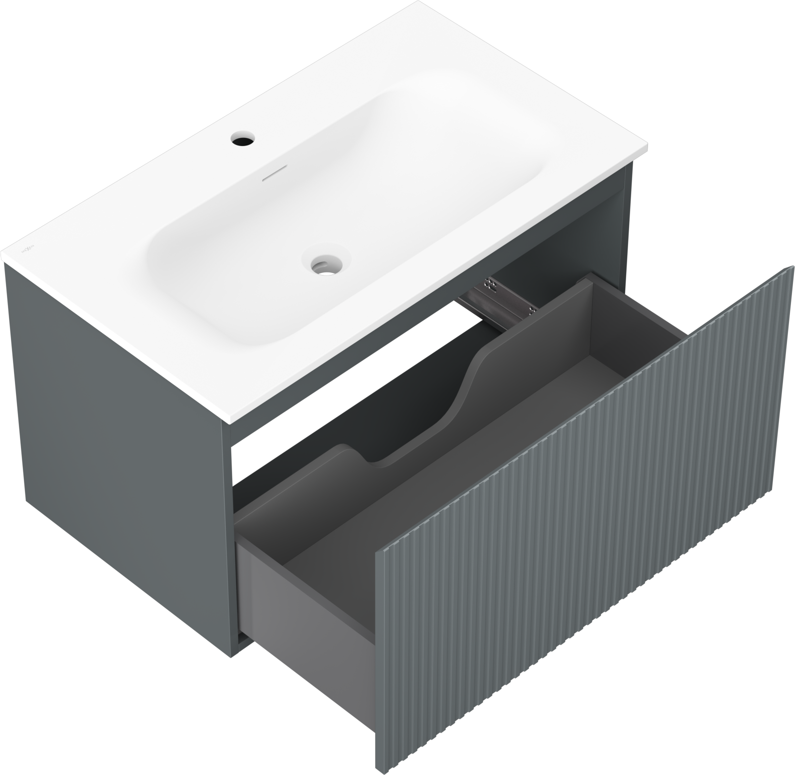 Decupajul în sertar este proiectat în așa fel încât să acomodeze sifonul, care este esențial în instalațiile de lavoare. Datorită acestui fapt, mobila poate fi montată complet funcțională, fără a fi necesară renunțarea la spațiul din sertar în favoarea instalației.