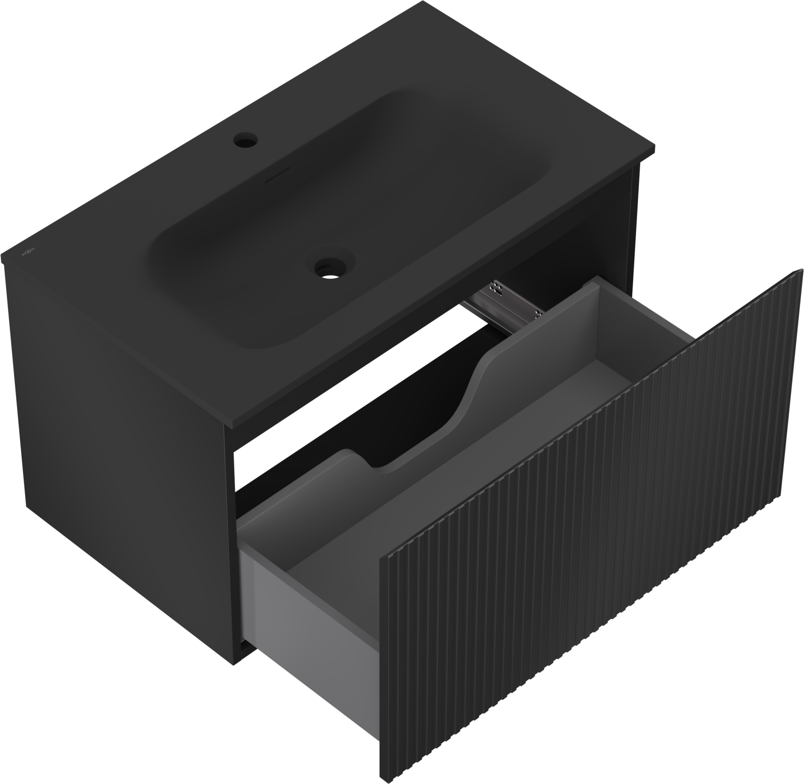 Decupajul în sertar este proiectat în așa fel încât să acomodeze sifonul, care este esențial în instalațiile de lavoare. Datorită acestui fapt, mobila poate fi montată complet funcțională, fără a fi necesară renunțarea la spațiul din sertar în favoarea instalației.