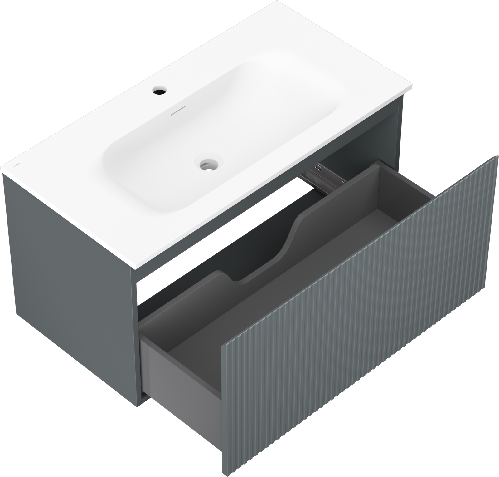 Decupajul în sertar este proiectat în așa fel încât să acomodeze sifonul, care este esențial în instalațiile de lavoare. Datorită acestui fapt, mobila poate fi montată complet funcțională, fără a fi necesară renunțarea la spațiul din sertar în favoarea instalației.
