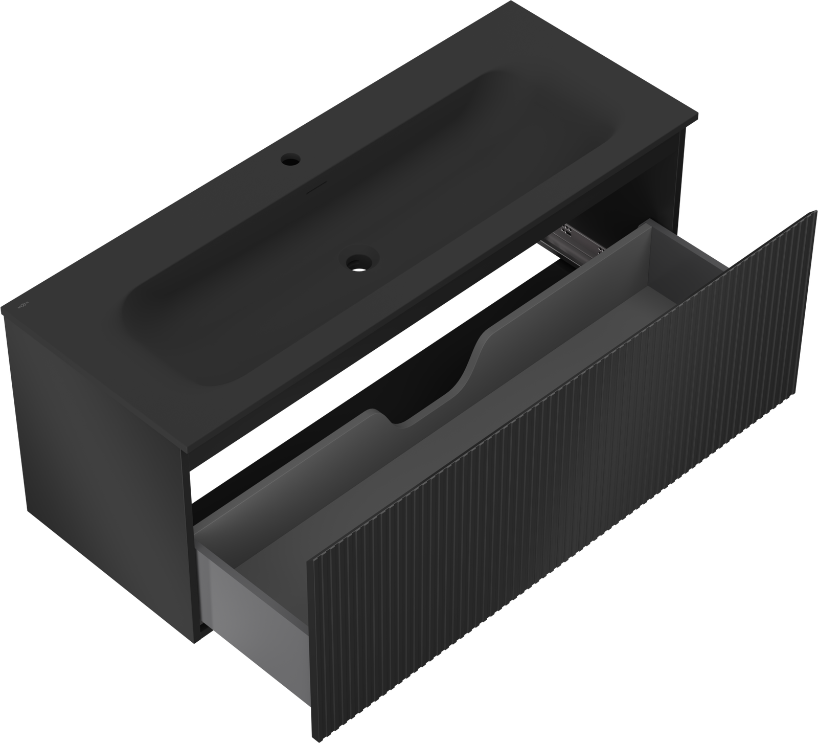 Decupajul în sertar este proiectat în așa fel încât să acomodeze sifonul, care este esențial în instalațiile de lavoare. Datorită acestui fapt, mobila poate fi montată complet funcțională, fără a fi necesară renunțarea la spațiul din sertar în favoarea instalației.