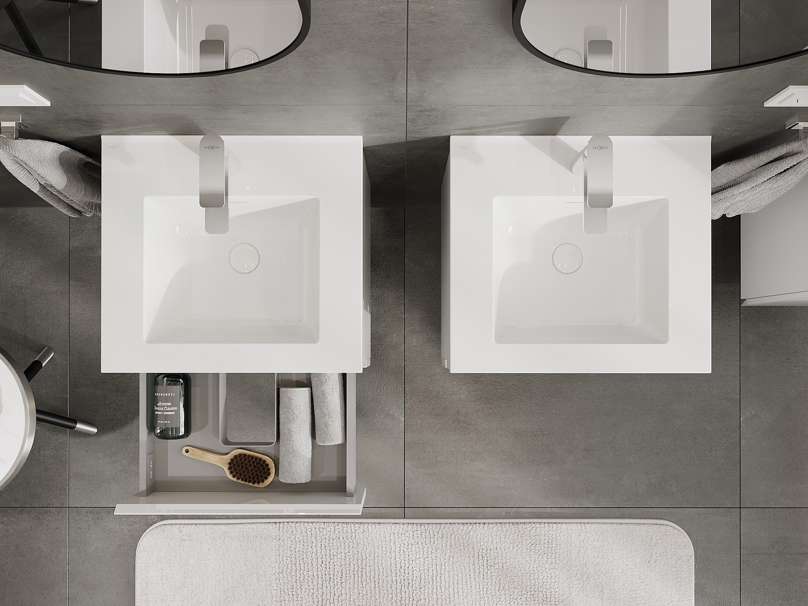 Mobilierul nostru modular pentru baie poate fi combinat în diverse configurații de culori, permițând personalizarea completă. Puteți alege atât aspectul, cât și funcțiile fiecărui element, ceea ce permite adaptarea mobilierului la preferințele dvs. stilistice și funcționale.