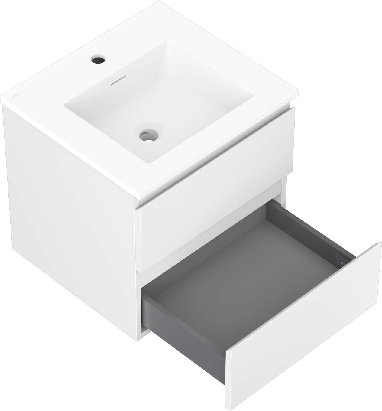 Decupajul în sertar este proiectat în așa fel încât să acomodeze sifonul, care este esențial în instalațiile de lavoare. Datorită acestui fapt, mobila poate fi montată complet funcțională, fără a fi necesară renunțarea la spațiul din sertar în favoarea instalației.
