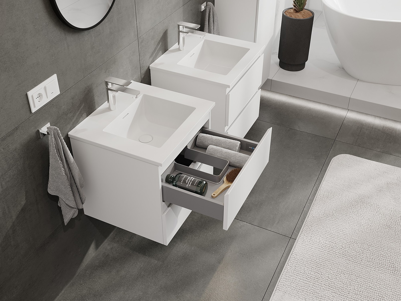 Corpul dulapului este livrat complet asamblat, ceea ce înseamnă confort maxim și economie de timp. Nu trebuie să pierzi ore întregi asamblând mobilierul – este suficient să îl montezi în locul ales din baie. Aceasta este soluția ideală pentru persoanele care prețuiesc montajul rapid și efectul imediat.